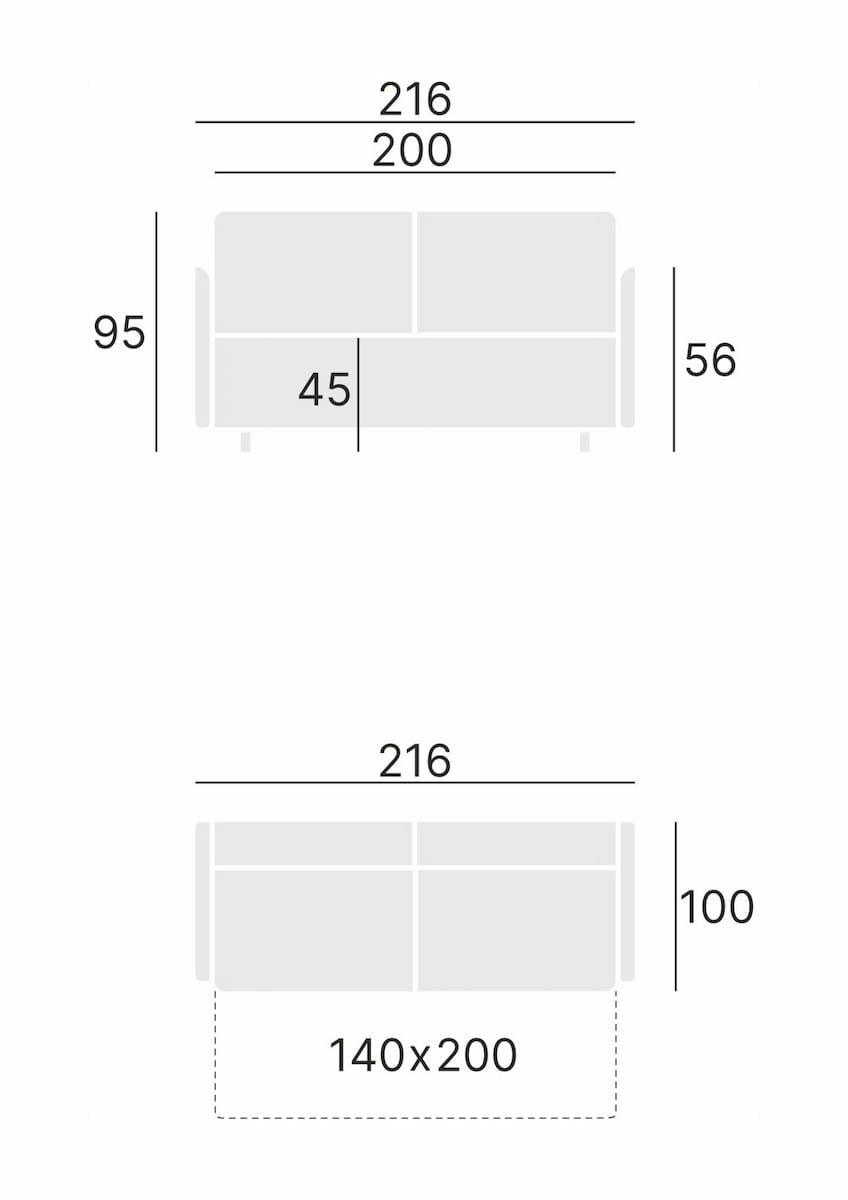 Kanapa na nóżkach Ikaria - bez boków, z funkcją spania [COMFORTEO]