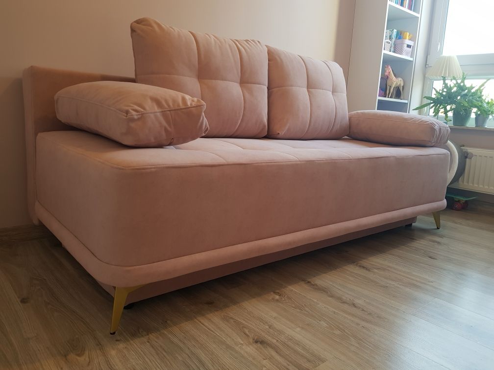 Idealnie wpisuje się w przestrzeń salonu, stwarzając doskonałe miejsce do rodzinnych spotkań. Dodatkowym atutem tego modelu jest funkcja spania oraz praktyczny pojemnik na pościel.