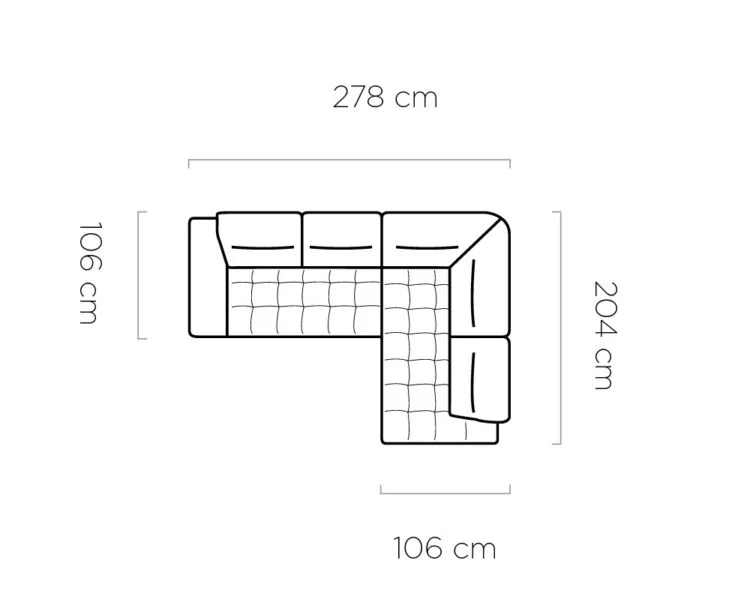 Narożnik FOCUS L ma wymiary 278 cm szerokości, 204 cm głębokości i 82/98 cm wysokości. Smukłe, zgrabne nóżki dodają mu lekkości. Doskonale wpasowuje się w każdą aranżację pokoju, a dzięki subtelnym przeszyciom i eleganckim pikowaniom siedziska, wnętrze zyskuje nowoczesny charakter.