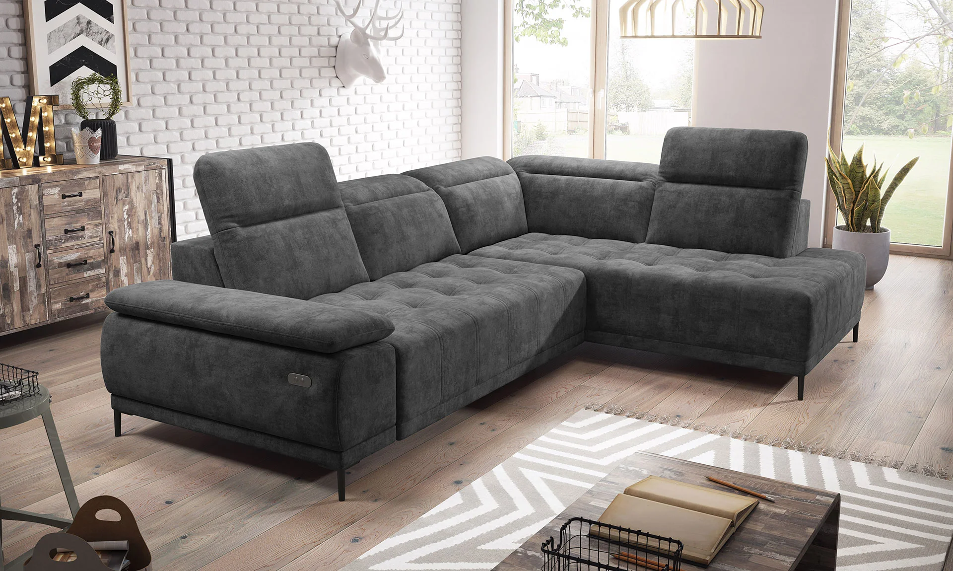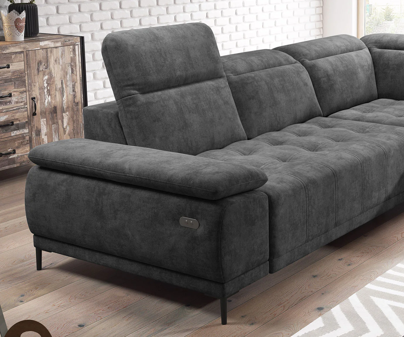 Ten wyjątkowy narożnik to kwintesencja elegancji i najwyższego komfortu. Doskonale sprawdzi się jako codzienny mebel w salonie, ponieważ znakomicie znosi intensywne użytkowanie. Dzięki regulowanym zagłówkom oraz elektrycznie wysuwanemu siedzisku, relaks jest zawsze na wyciągnięcie ręki.
