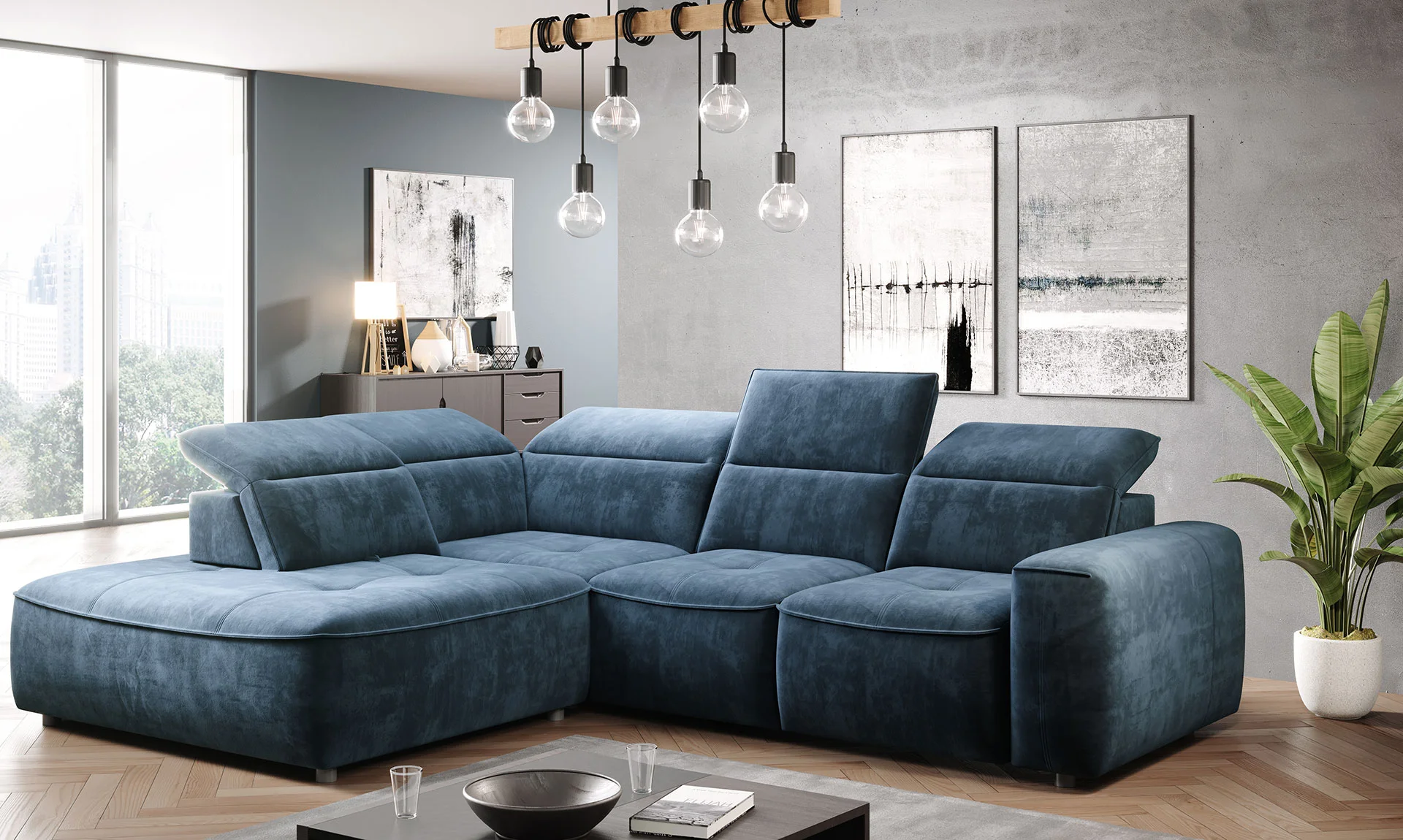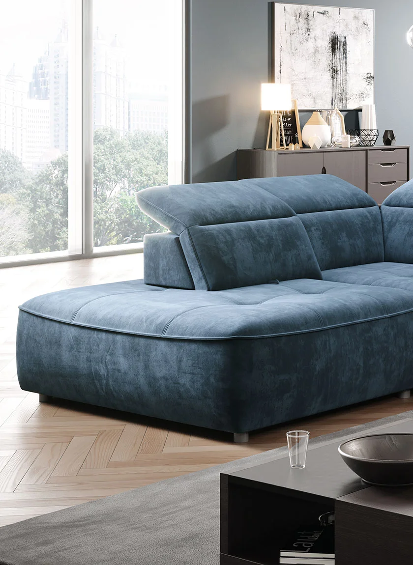 Colombo L wyróżnia się regulowanymi zagłówkami oraz oparciem o bardziej komfortowym kącie nachylenia, co sprawia, że korzystanie z narożnika staje się niezwykle przyjemne i dostosowane do Twoich indywidualnych potrzeb. Dodatkowym atutem jest pojemnik ukryty w otomanie, idealny do przechowywania dodatkowego kompleku pościeli, co sprawia, że Colombo L nie tylko zachwyca designem, ale również funkcjonalnością.