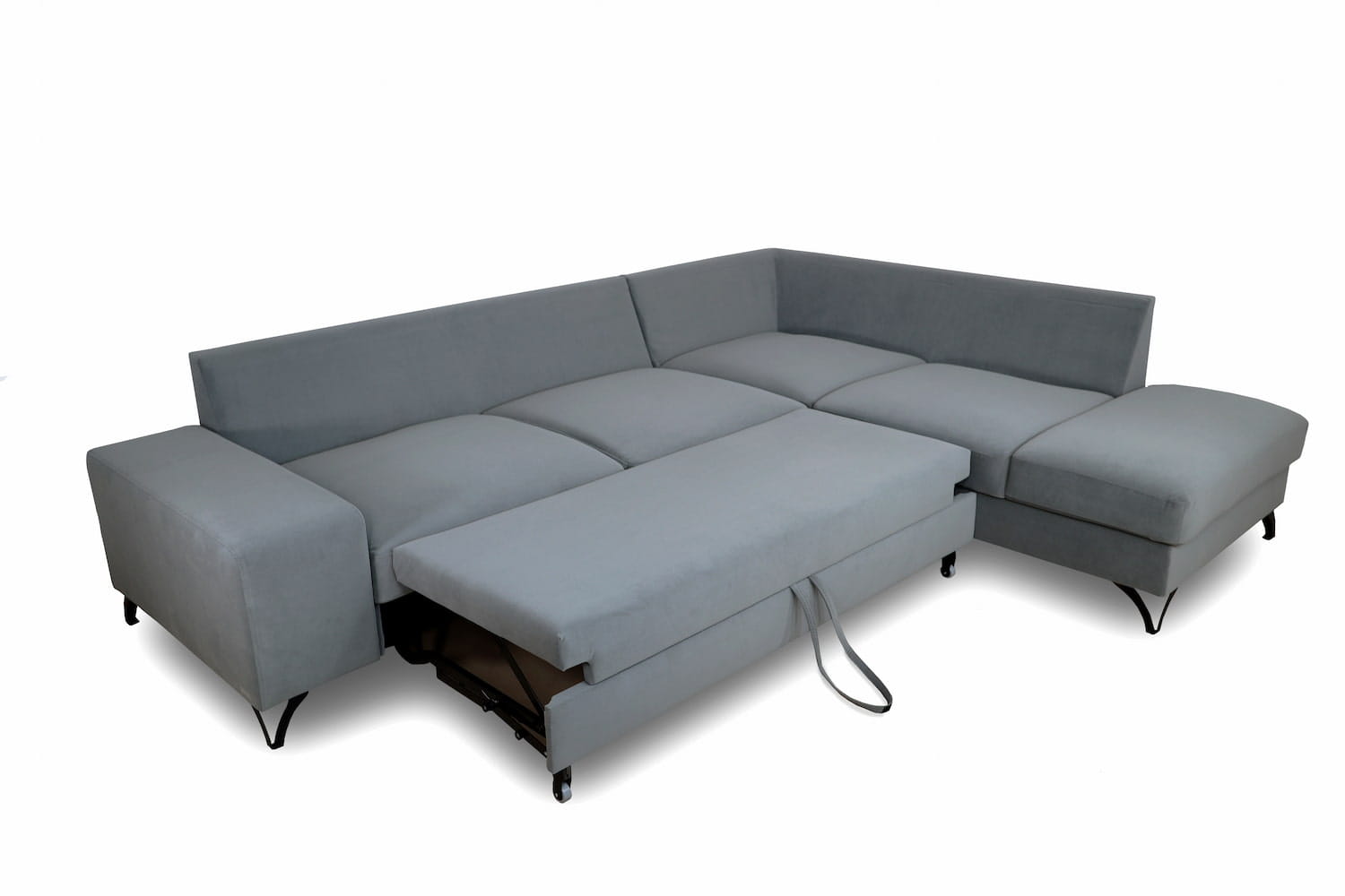 To wielofunkcyjne, modułowe dzieło sztuki w klasycznym stylu, wyróżniające się "miękką" formą. Prezentowana wersja zamknięta oferuje szeroki podłokietnik, sofę dwuosobową z funkcją spania oraz otomanę z oparciem i dużym pojemnikiem na pościel.