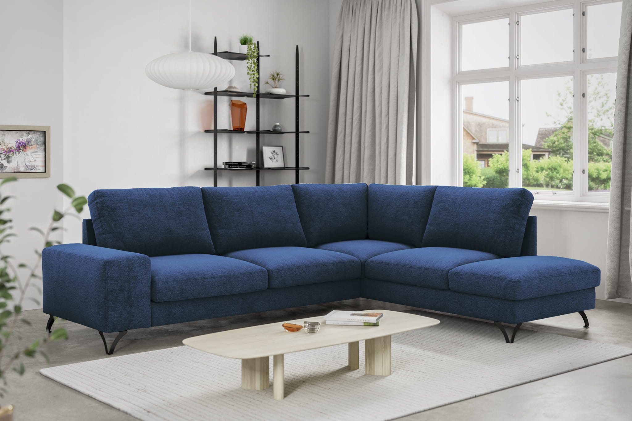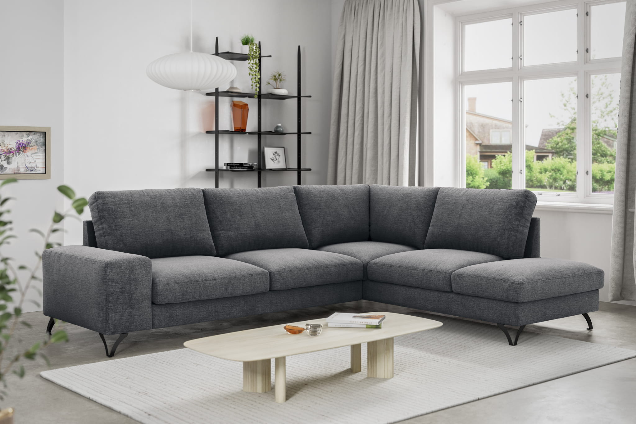 Jako modułowy mebel, Flavio dostępny jest w wielu konfiguracjach, a tutaj prezentujemy go jako Narożnik Zamknięty z obszerną otomaną i podłokietnikiem po jednej stronie. Flavio zachwyca nie tylko pięknym kształtem, ale także finezyjnymi nóżkami, które nadają mu lekkości.