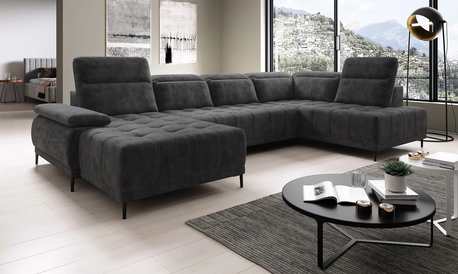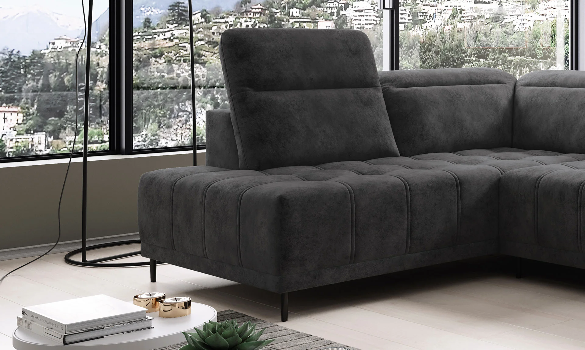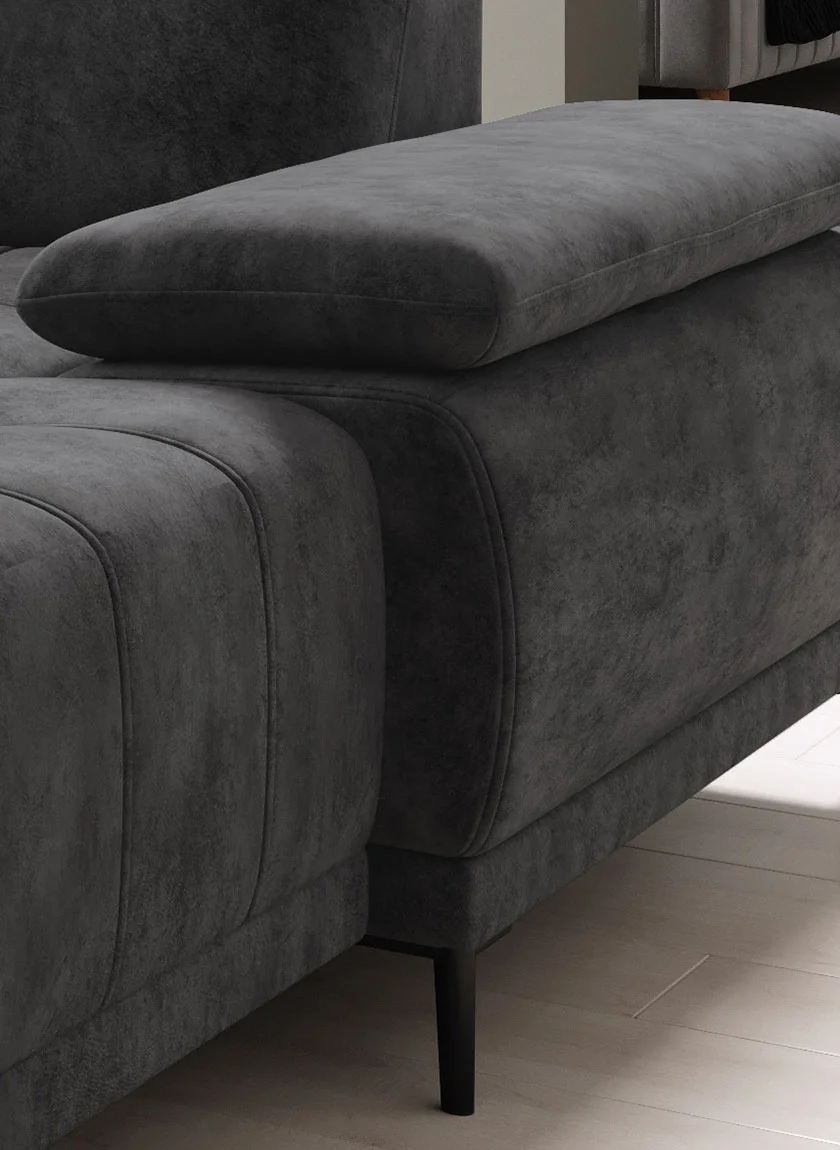 Narożnik FOCUS XL to nie tylko kwestia wyglądu, lecz także komfortu użytkowania. Specjalna pianka i sprężyny faliste, użyte do jego produkcji, gwarantują nie tylko wygodę, ale również trwałość. Model ten wyróżnia się również szeregiem funkcji ułatwiających codzienne życie – elektrycznie wysuwane siedzisko, opcja spania oraz możliwość ustawienia go w wersji lewo- lub prawostronnej sprawiają, że to mebel dopasuje się do każdej przestrzeni.