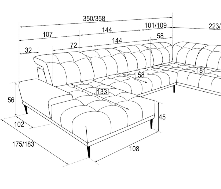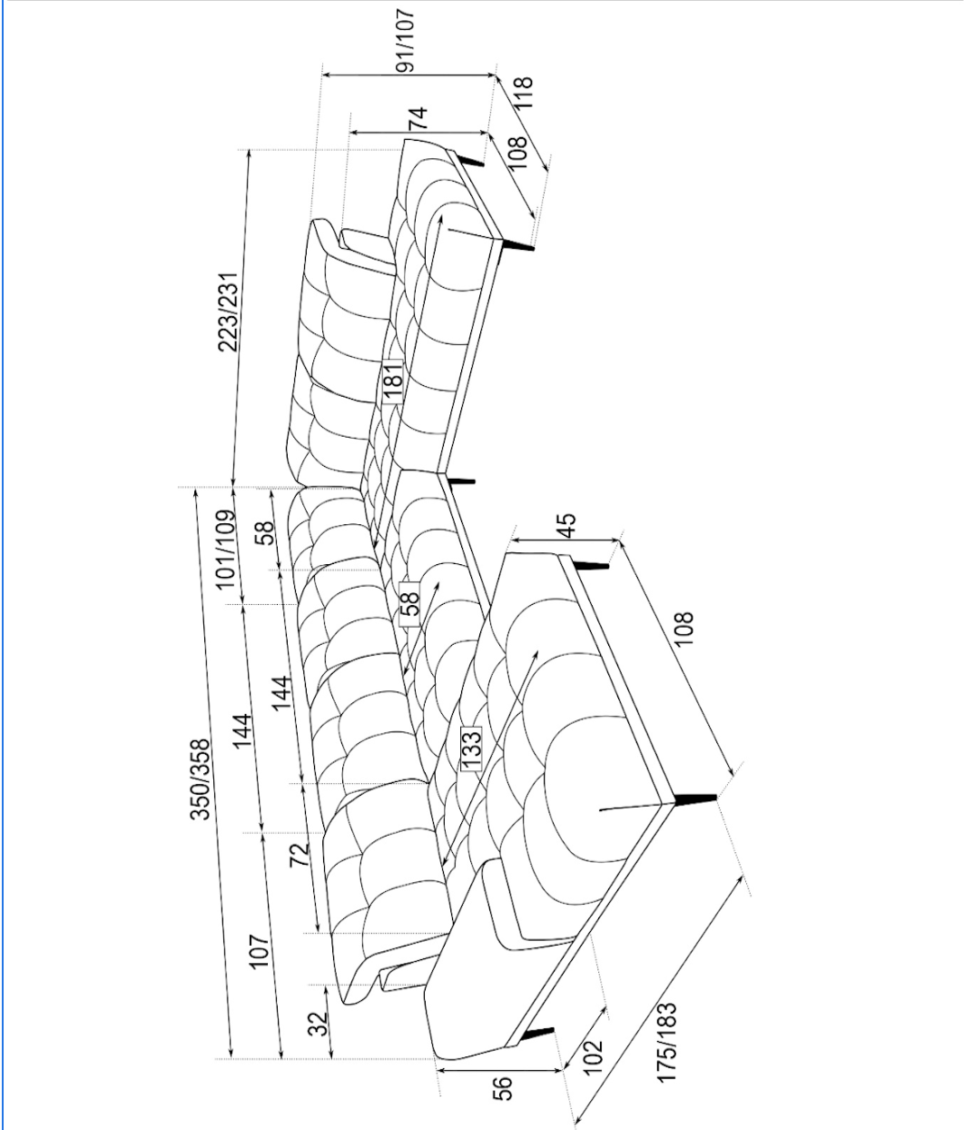 | Głębokość siedzisk | 181 / 58 / 133 cm |