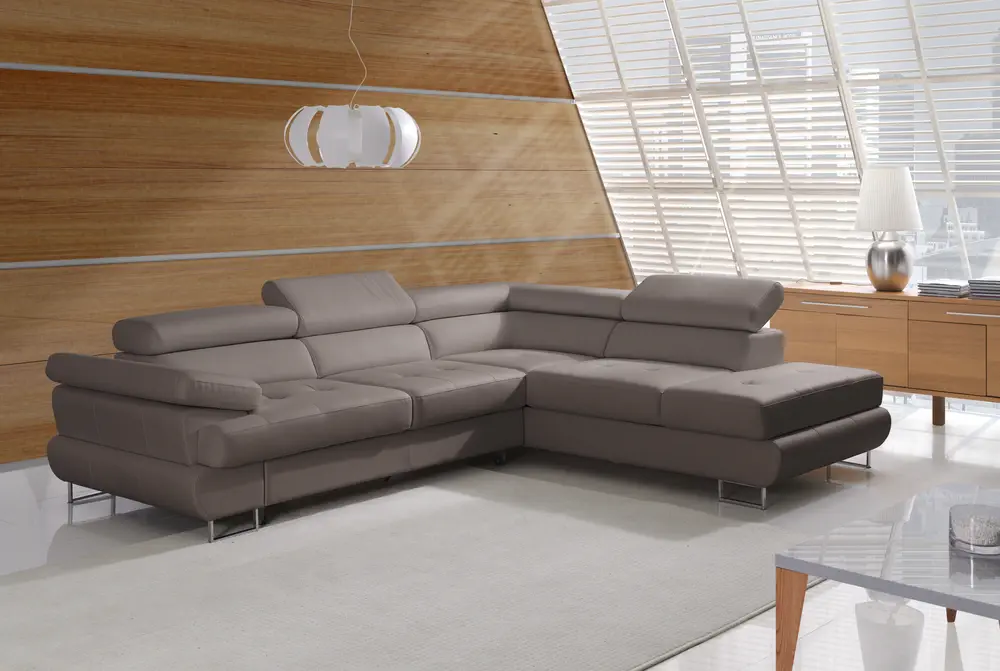 Dzięki funkcji spania oraz pojemnikowi na pościel narożnik Luton jest idealnym rozwiązaniem dla gości, oferując dodatkową przestrzeń do spania. Jego industrialny styl oraz opcja wykończenia w naturalnej skórze nadają wnętrzom klasy i elegancji.
