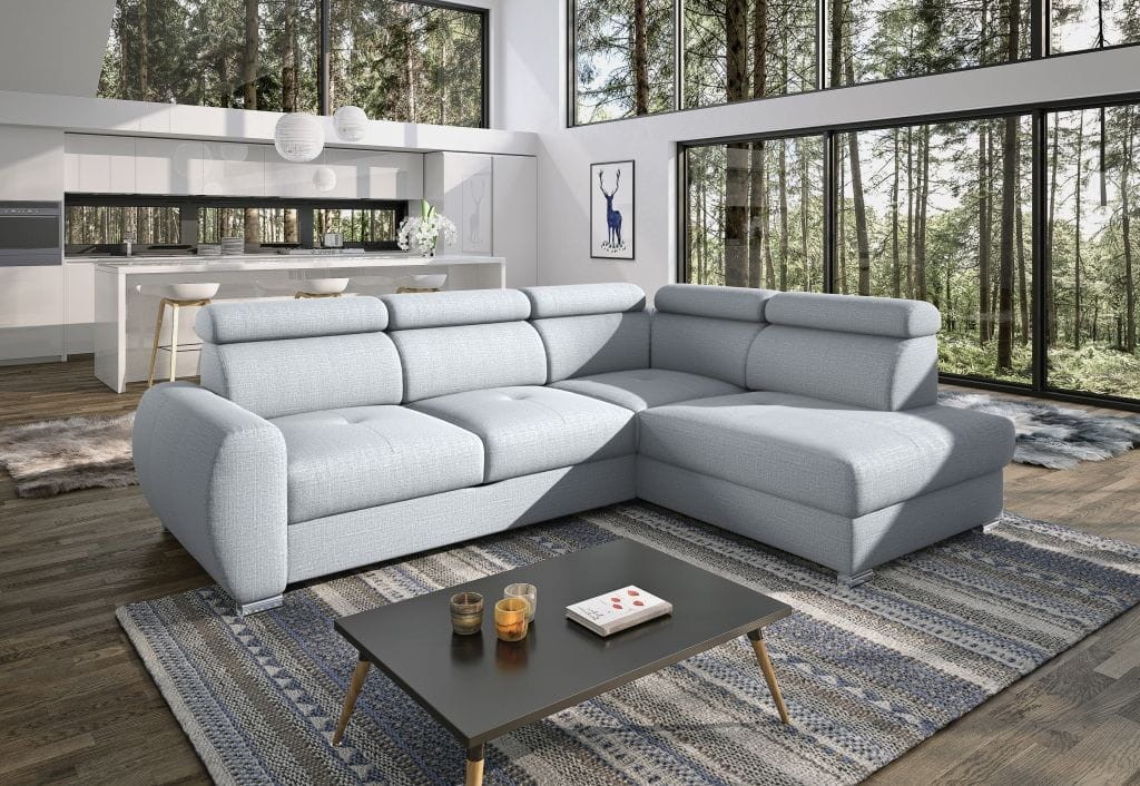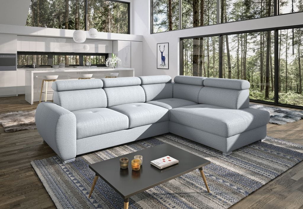 Komfortowa funkcja spania - rozkładana zaledwie jednym ruchem dzięki automatycznemu mechanizmowi typu "puma". Powierzchnia spania wynosi 136×190 cm i jest równomierna w swojej sprężystości. Narożnik wyposażony jest również w duży, funkcjonalny pojemnik na pościel.