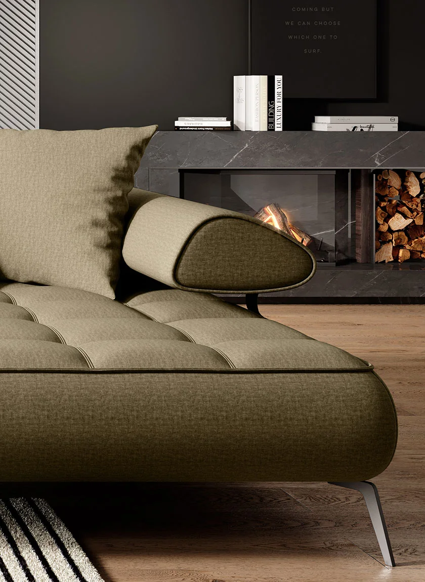 Nowoczesny narożnik, który został posadowiony na wysokich, eleganckich nóżkach. Elektryczna regulacja głębokości siedziska pozwala dopasować rodzaj wypoczynku do indywidualnych potrzeb użytkowników, gwarantując wypoczynek na najwyższym poziomie.