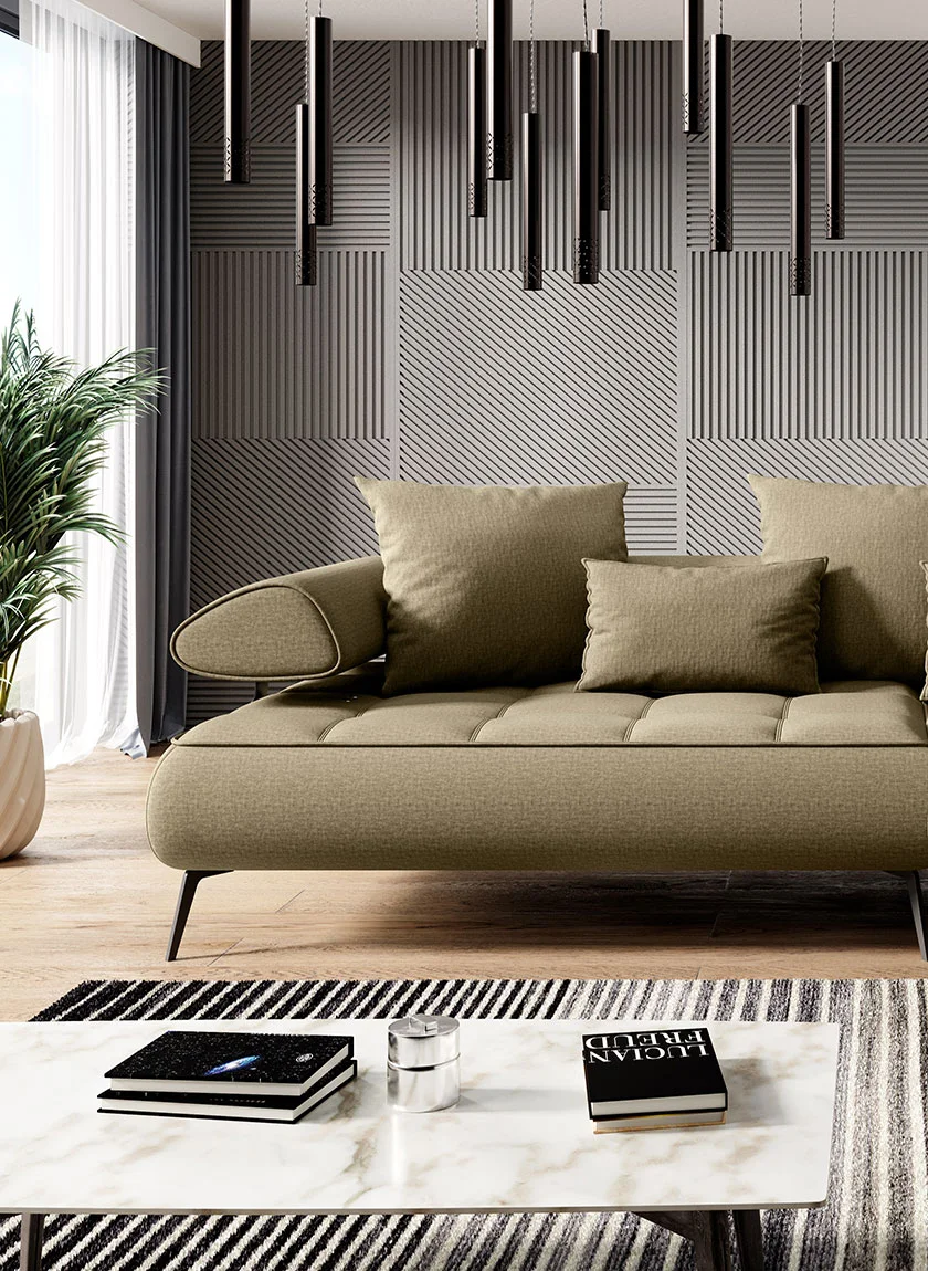 Model idealnie wpasuje się w modernistyczne wnętrza. Charakterystyczne oparcia oraz komplet poduszek sprawiają, że SELEDO staje si