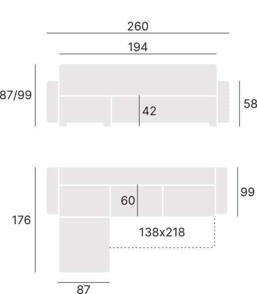 Narożnik ma bardzo wygodną funkcję spania, którą można rozłożyć jednym prostym ruchem dzięki automatycznemu mechanizmowi typu "puma". Powierzchnia spania wynosi 138×218 cm i jest równie wygodna na całej swojej długości. Model wyposażony jest również w duży, praktyczny pojemnik na pościel.