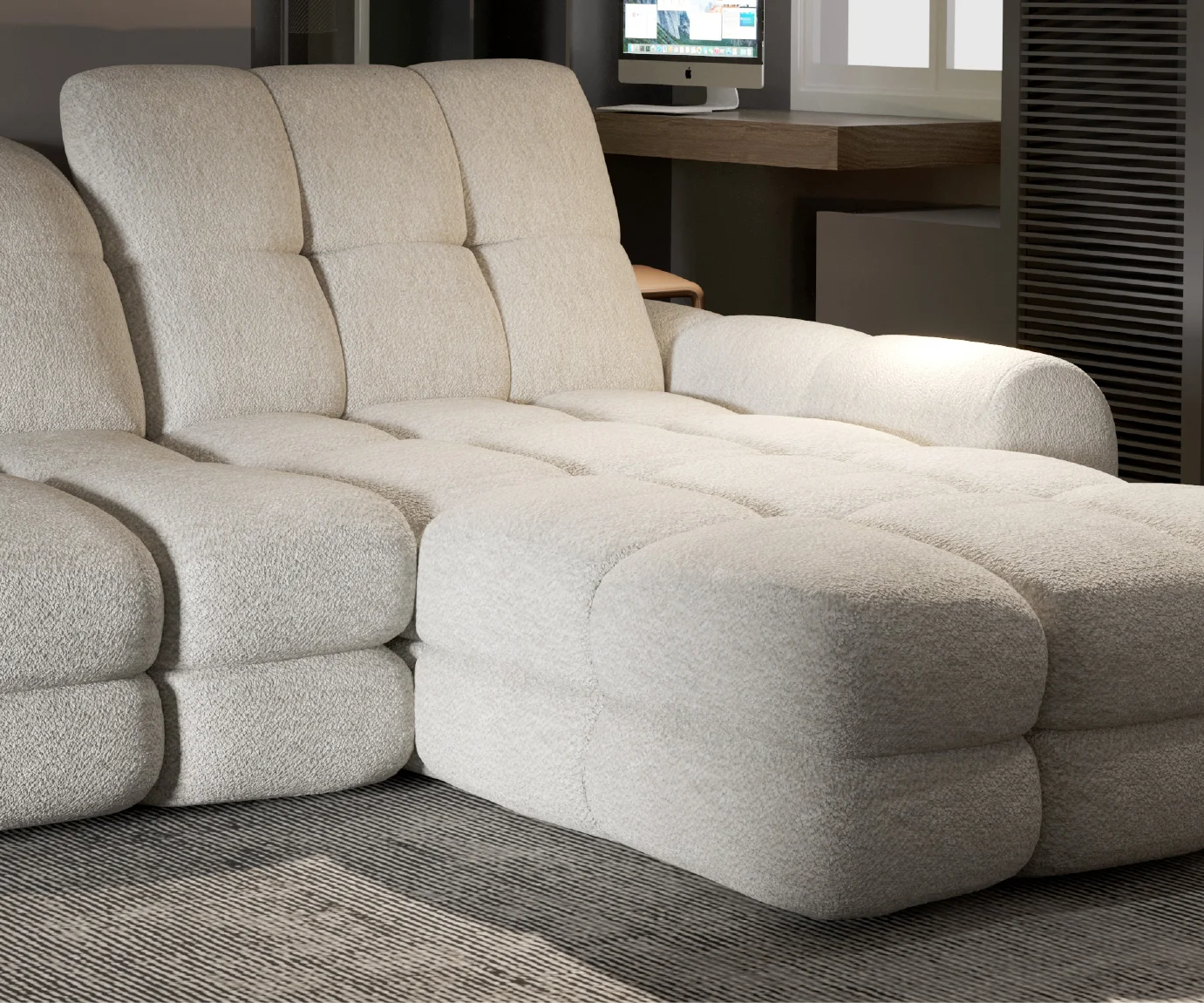 Dodatkowym atutem Tollo Mini jest ukryty w otomanie pojemnik, który umożliwia przechowywanie poduszek czy ciepłego koca, zachowując porządek w salonie. To mebel, który doskonale wpisuje się w trendy współczesnego designu, łącząc styl i funkcjonalność w jednym rozwiązaniu.