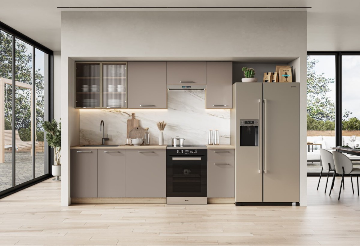 ALICANTE 240 kuchnia zestaw korpus: dąb cremona, fronty: beżowy (10p=1kpl)