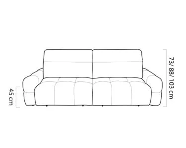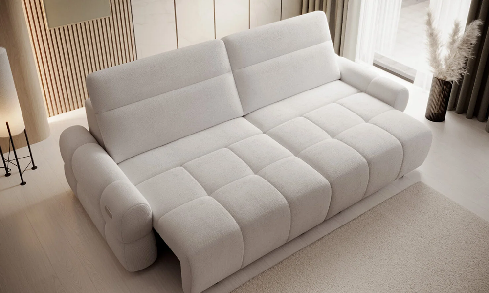 Zaawansowany mechanizm umożliwia elektryczne wydłużenie siedziska aż do 60 cm z obu stron, dzięki czemu sama sofa zmienia się w obszerną strefę relaksu dopasowaną do Twoich potrzeb. - Funkcja relax zagłówka i podłokietnika