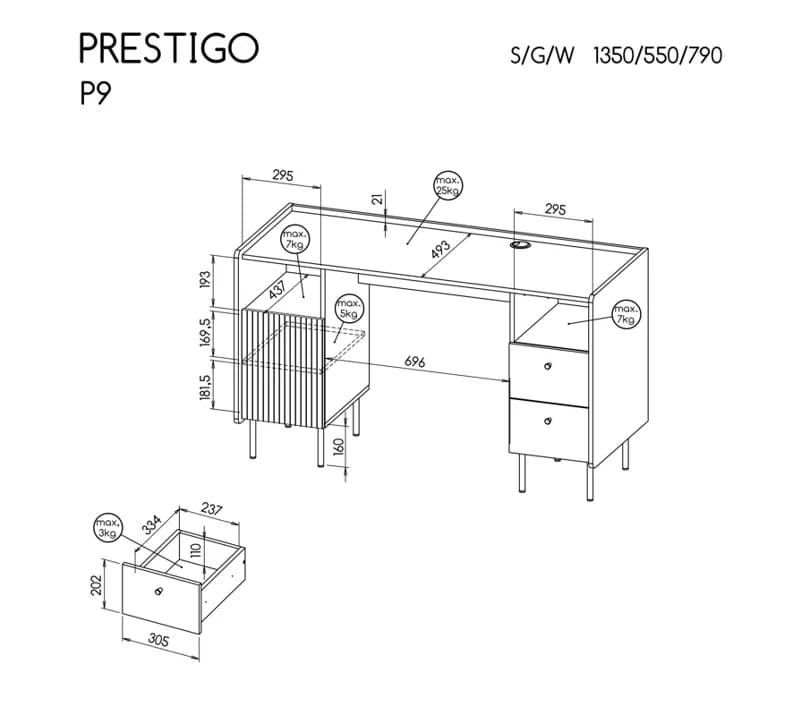 Biurko na nóżkach z dwiema szufladami Prestigo P9