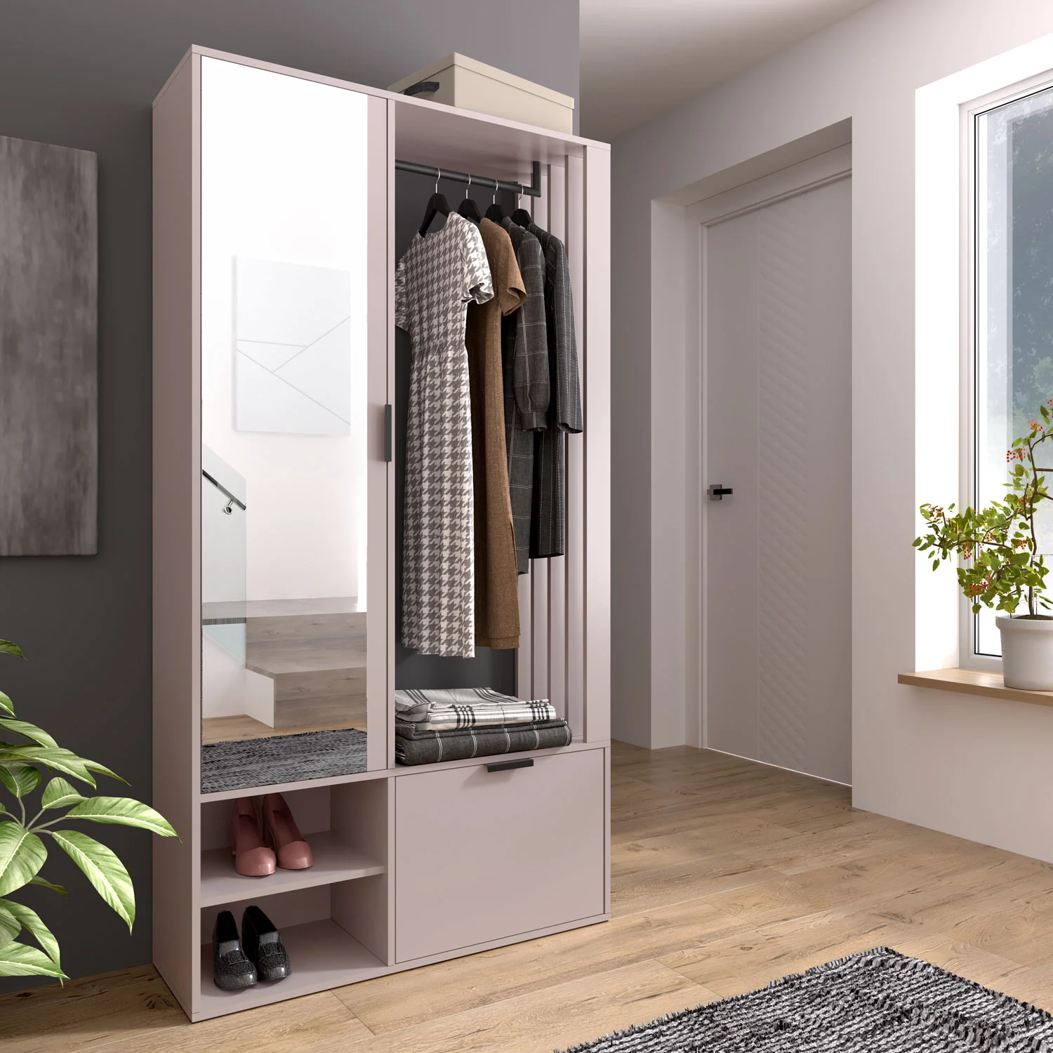 Garderoba dostępna jest w trzech wersjach kolorystycznych: cała w kolorze kaszmir, stone green i grafit.