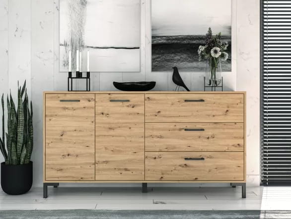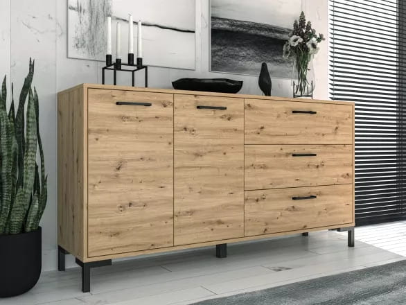 Komoda 2- drzwiowa z trzema szufladami na nóżkach dąb artisan Nevio 13