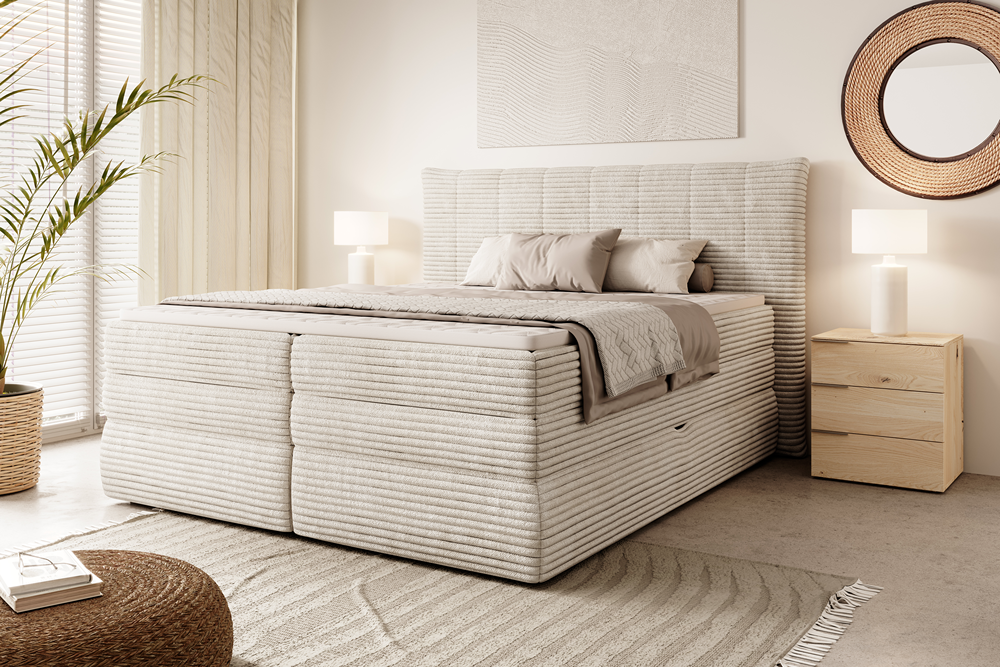 Łóżko kontynentalne Amber to elegancka propozycja z serii box springs, która łączy klasyczny wygląd z wysoką funkcjonalnością.