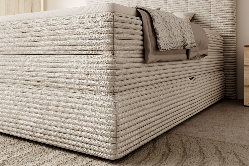 Model skrywa w swojej konstrukcji dwa praktyczne pojemniki na pościel, dzięki czemu łatwiej utrzymać porządek w sypialni.