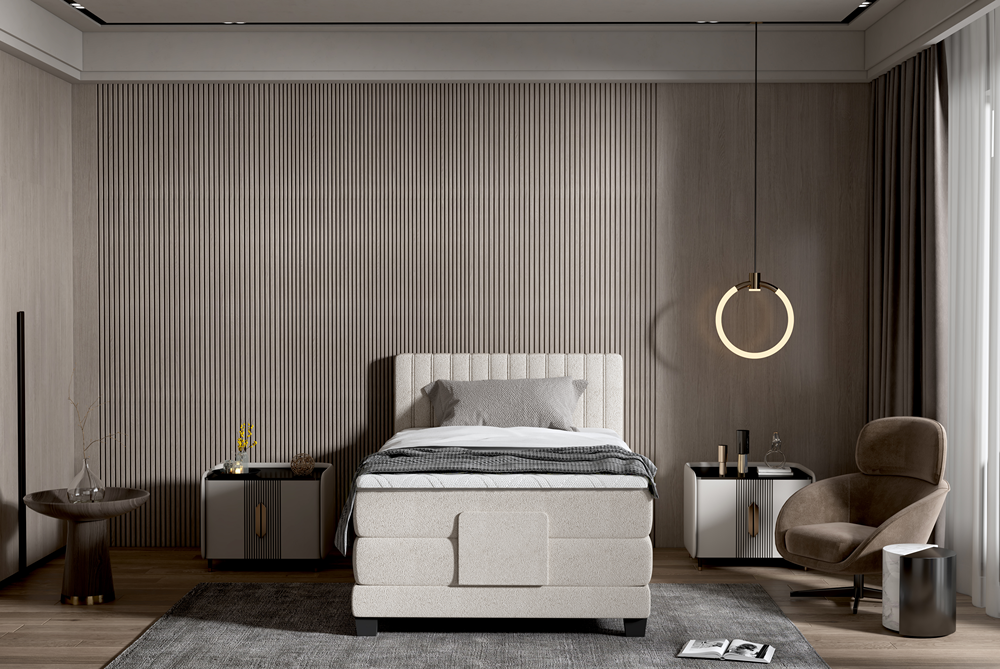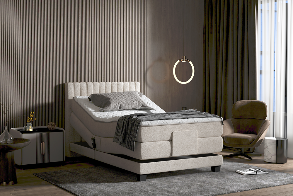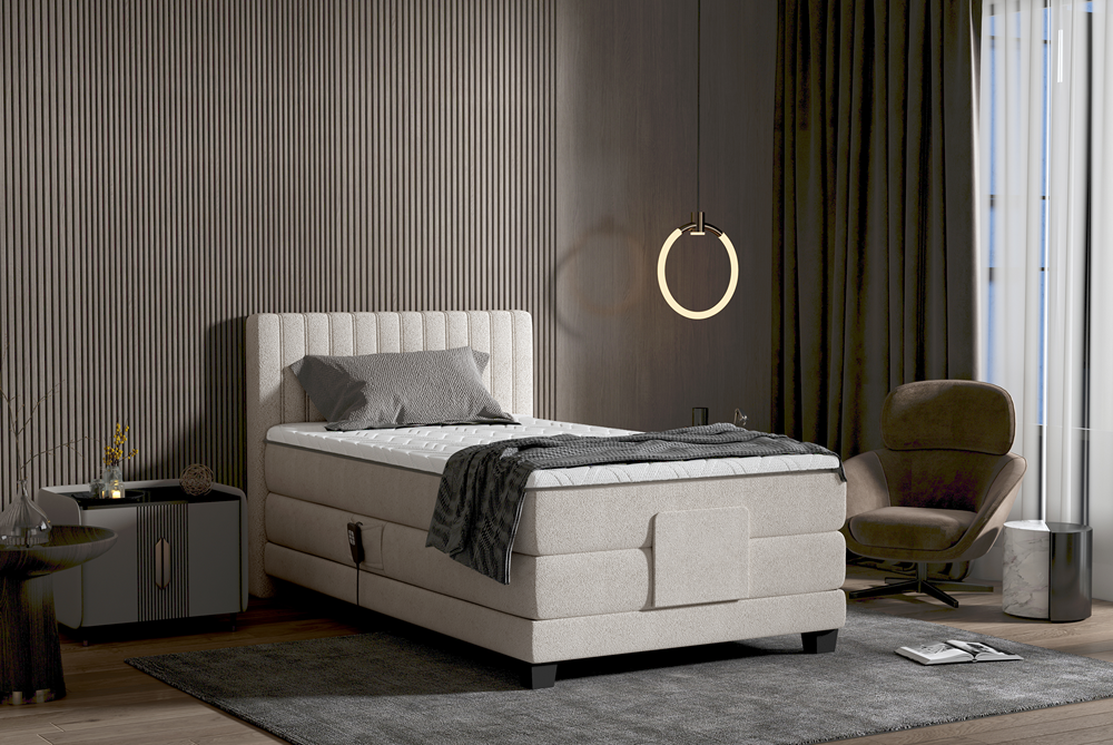 Model wyróżnia się elektryczną regulacją pozycji spania, która umożliwia precyzyjne dostosowanie kąta nachylenia do indywidualnych potrzeb – idealne do relaksu, czytania czy łatwiejszego wstawania.