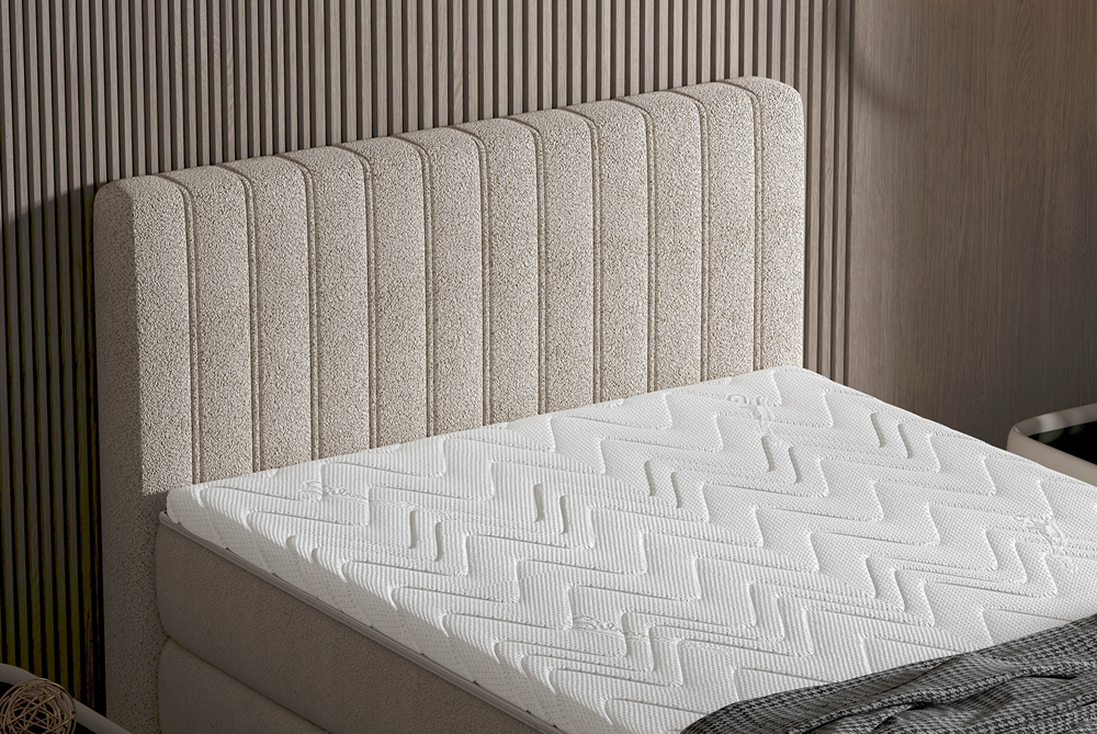 O najwyższą jakość snu dba podwójny materac kieszeniowy 7‑strefowy, zapewniający punktowe podparcie sylwetki, uzupełniony topperem premium KALTSCHAUM dla dodatkowej miękkości i lepszej izolacji termicznej. Taki zestaw gwarantuje sprężysty relaks i stabilność przez całą noc.