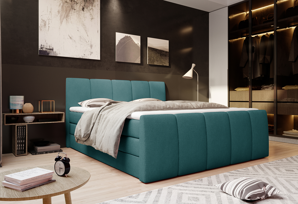 Łóżko dostępne jest w szerokiej gamie tkanin i kolorów, dzięki czemu bez trudu wpasujesz je w charakter swojego wnętrza.