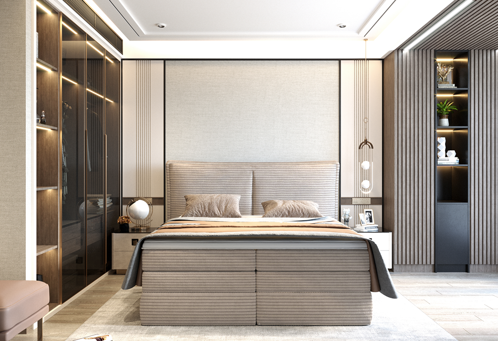 Łóżko dostępne jest w szerokiej gamie tkanin i kolorów, dzięki czemu z łatwością dopasujesz je do charakteru swojej sypialni.