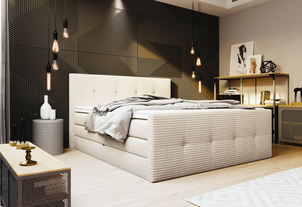 Łóżko kontynentalne Medino to niezawodna propozycja dla osób poszukujących stabilności i wygody w aranżacji sypialni.