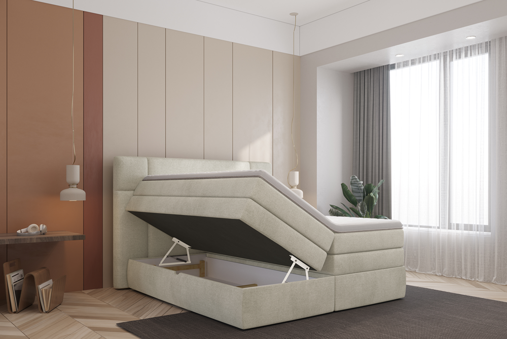 Praktycznym atutem modelu Palace jest podwójny pojemnik na pościel, który ułatwia przechowywanie i pomaga utrzymać porządek w sypialni.