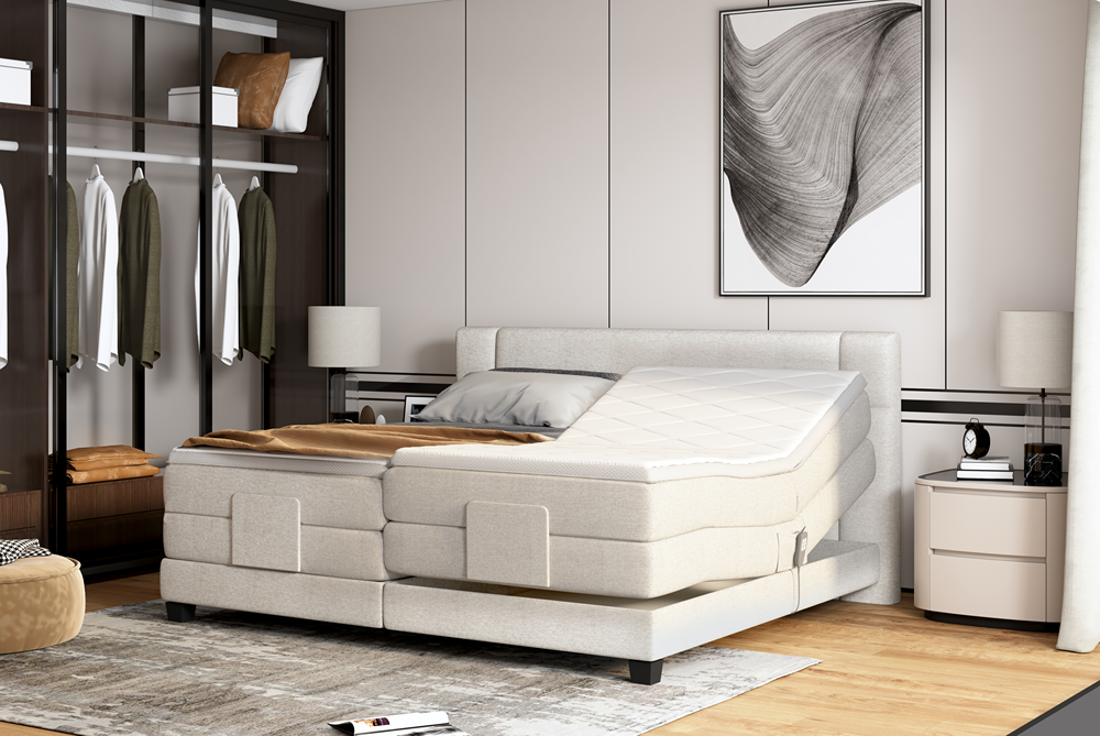 Kluczową zaletą modelu jest elektryczna regulacja pozycji spania, umożliwiająca łatwe dostosowanie kąta nachylenia do osobistych preferencji – idealne do wieczornego relaksu, czytania czy wygodnego wstawania.