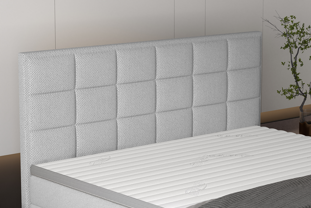 Komfort nocnego wypoczynku zapewnia solidny materac bonellowy w podstawie oraz materac kieszeniowy 7‑strefowy, który precyzyjnie dopasowuje się do sylwetki i wspiera ciało punktowo. Taki system gwarantuje sprężysty relaks i stabilne podparcie przez całą noc.