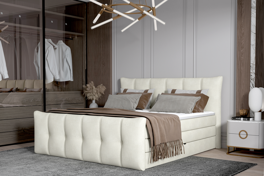 Łóżko kontynentalne Sofia to solidna propozycja dla osób ceniących wygodę i porządek w sypialni.