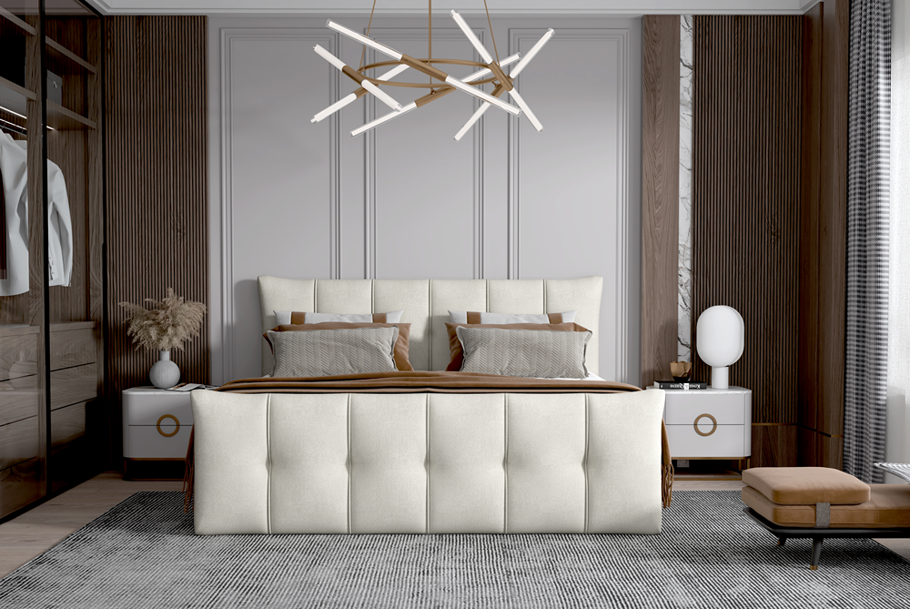 Łóżko dostępne jest w szerokiej gamie tkanin i kolorów, dzięki czemu idealnie wpasujesz je w aranżację swojego wnętrza.