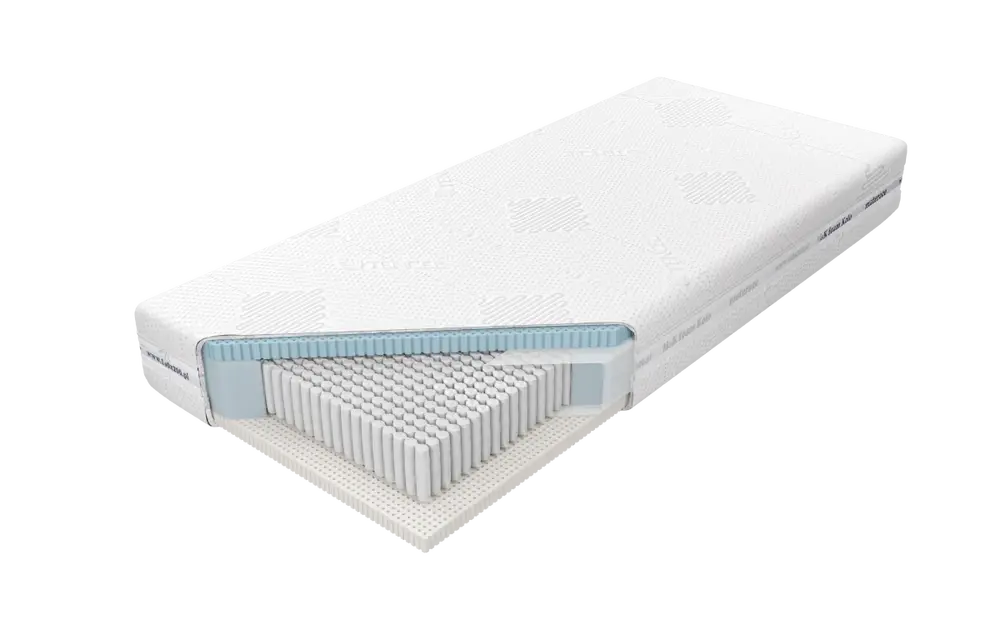 Z drugiej strony materaca znajduje się warstwa lateksu Talalay o grubości 3,5 cm, produkowanego na bazie naturalnego mleczka kauczukowego i lateksu syntetycznego. Ten lateks również charakteryzuje się otwartokomórkową strukturą, co zapewnia doskonałą wentylację i cyrkulację powietrza, a także optymalne podparcie dla Twojego ciała.