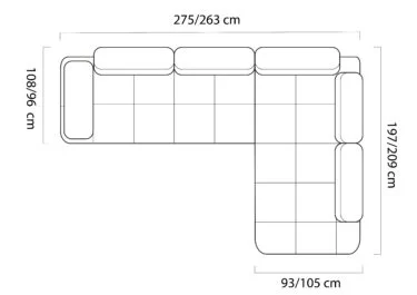 | Głębokość | 108 / 96, 197 / 209 cm |