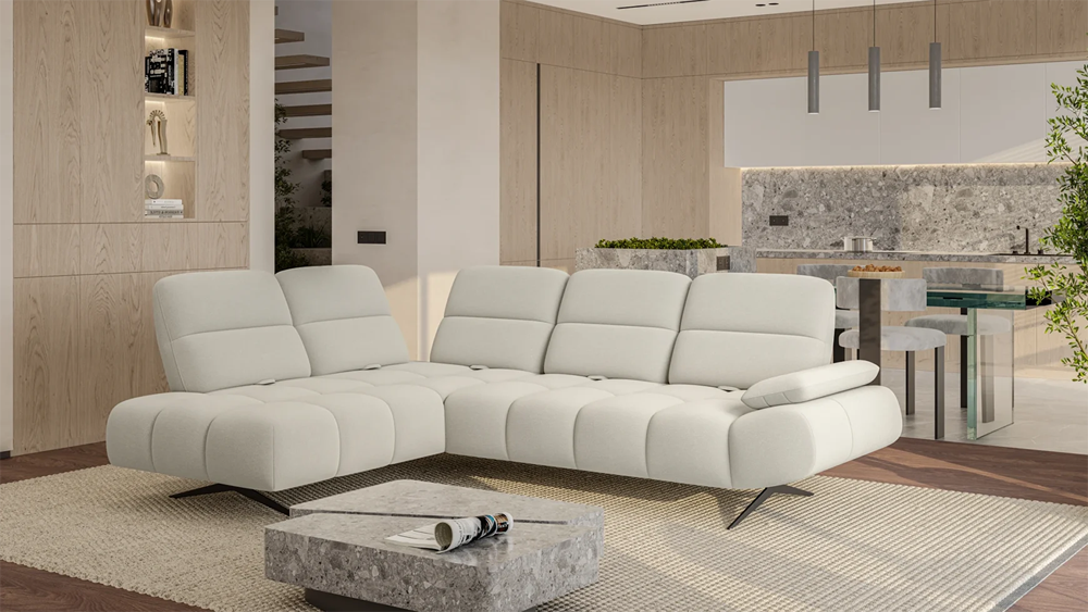 Dodatkowo jest możliwość dokupienia elektrycznie wysuwanego podnóżka, co z pewnością sprawi, że mebel będzie użytkowany z niezwykłą przyjemnością, a także umożliwi dopasowanie narożnika do indywidualnych potrzeb użytkownika.