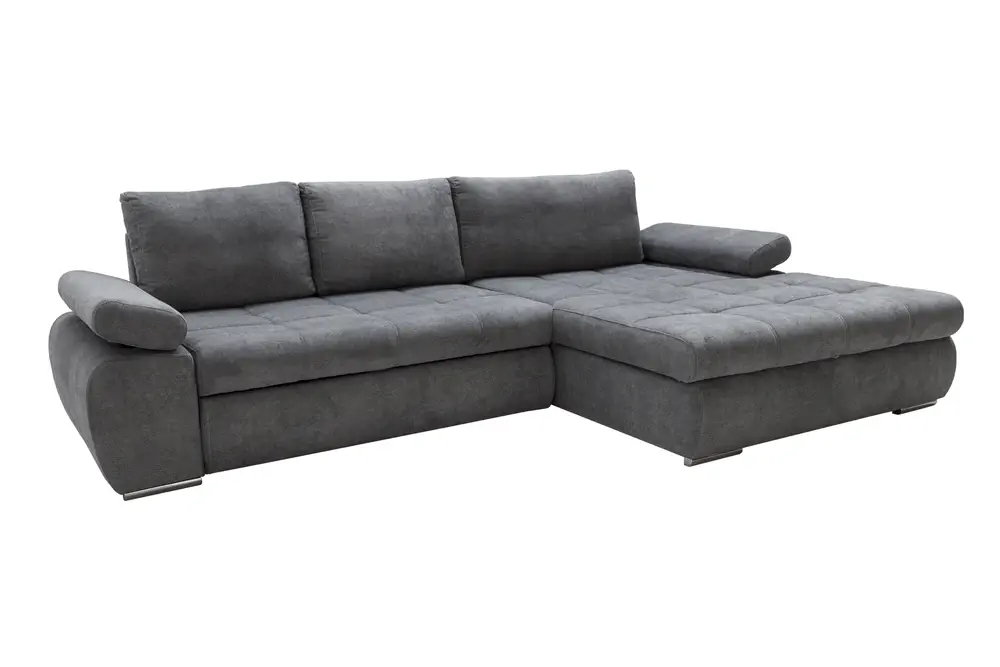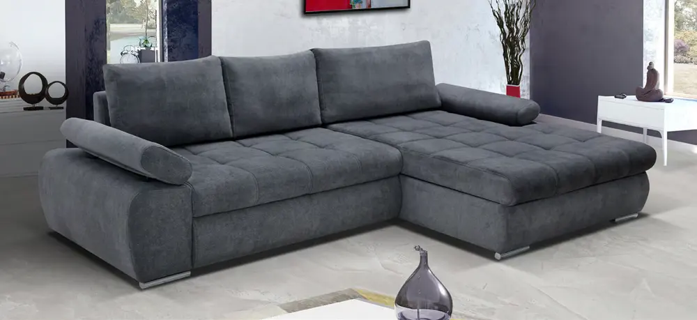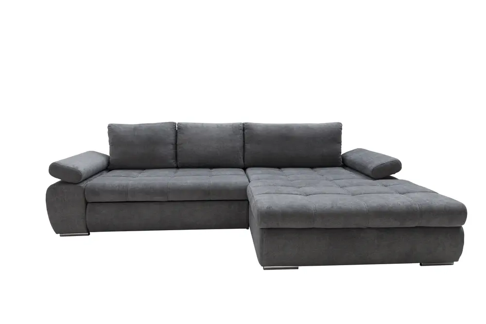 Narożnik dostępny jest w szerokiej gamie tkanin i kolorów oraz w wersji lewostronnej lub prawostronnej, co pozwala dopasować go do każdej aranżacji wnętrza.