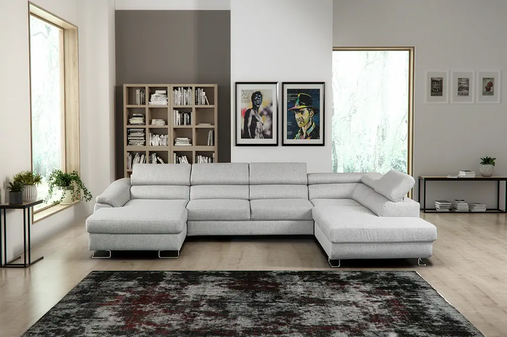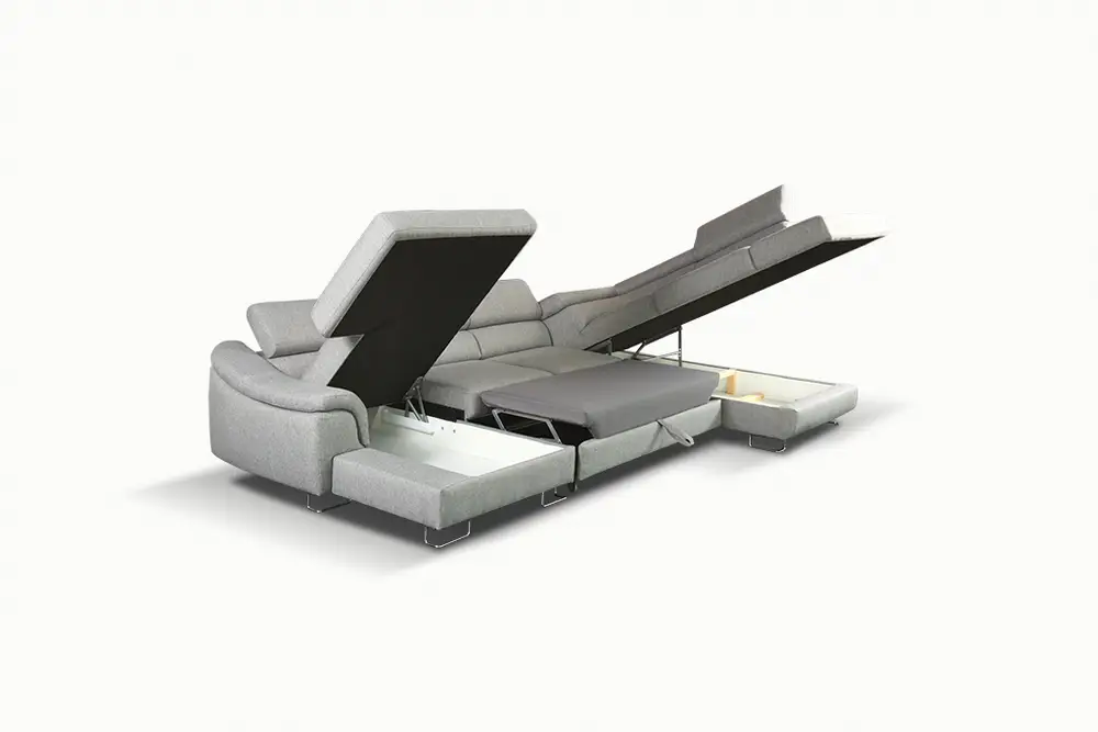 Narożnik Lavos U [Benix] z funkcją spania i dwoma pojemnikami na pościel i ruchomymi zagłówkami