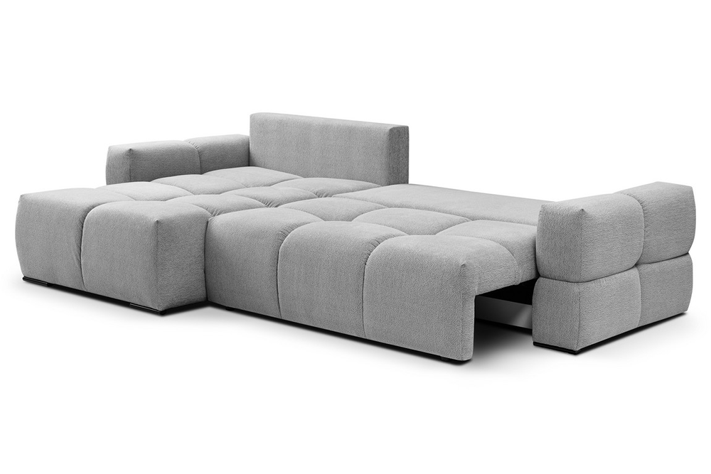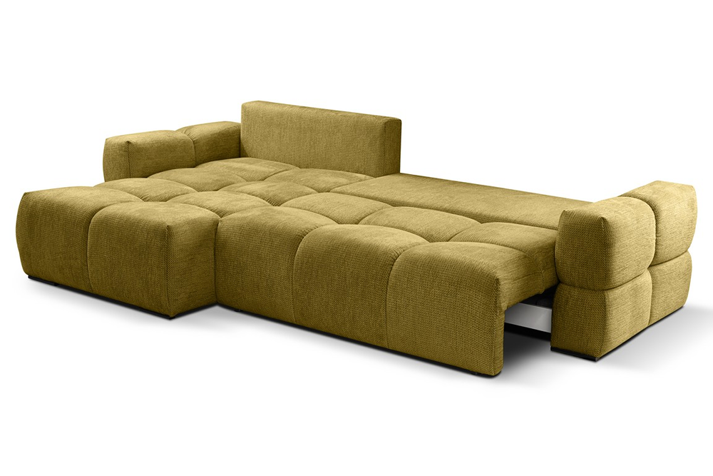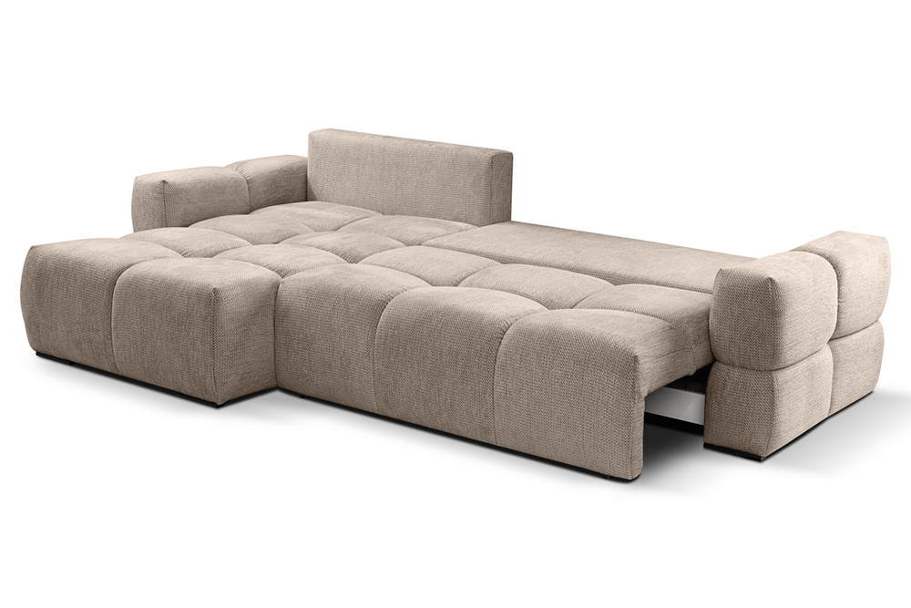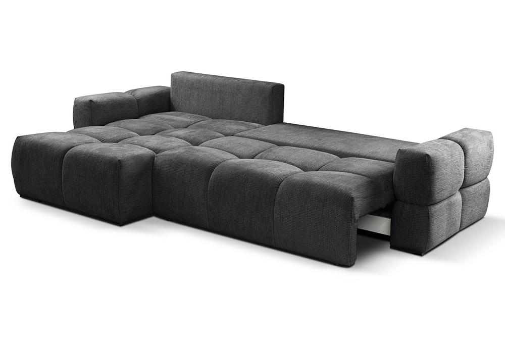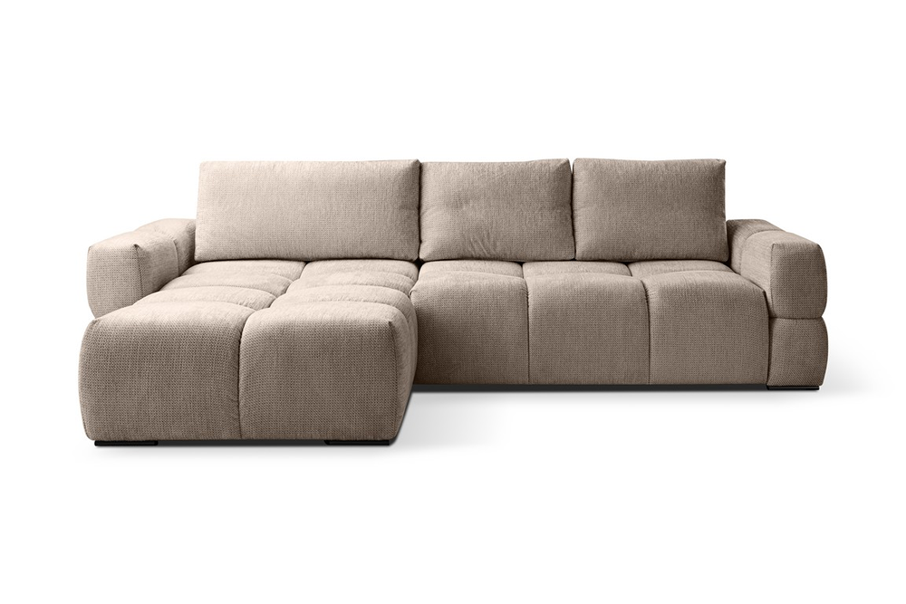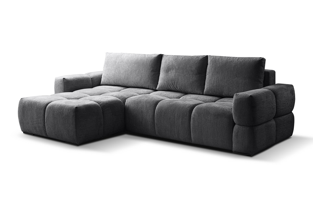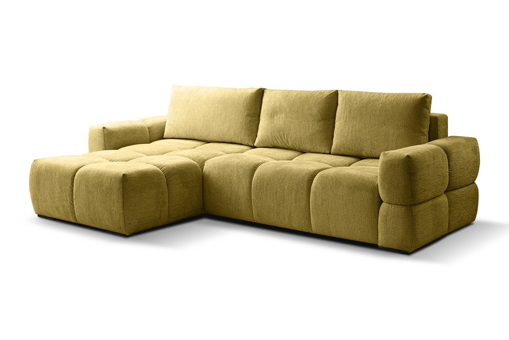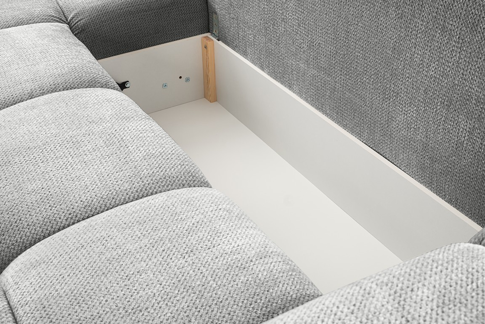 Narożnik Taremi to idealne połączenie wygody, praktyczności i elegancji, stworzone z myślą o tych, którzy cenią sobie wielofunkcyjne rozwiązania. Dzięki funkcji spania, w kilka chwil zamienisz salon w przytulną sypialnię dla gości, a wbudowany pojemnik na pościel zapewni wygodne przechowywanie bez konieczności szukania dodatkowej przestrzeni.