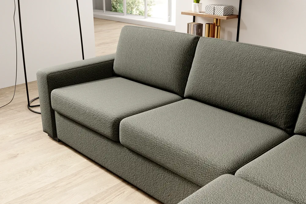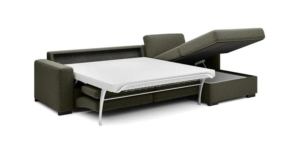 Ten narożnik o minimalistycznej formie został zaprojektowany tak, aby idealnie współgrał z charakterem wnętrza. Dzięki włoskiemu systemowi rozkładania jednym ruchem może być łatwo przekształcony w wygodne łóżko. Jego prosty, ale zarazem efektowny design sprawia, że będzie idealnym wyborem dla użytkowników ceniących funkcjonalność i wygodę.