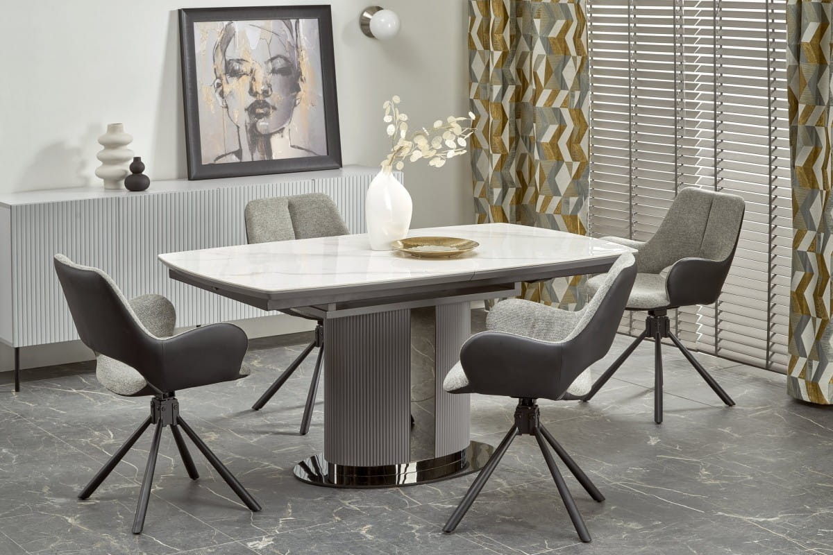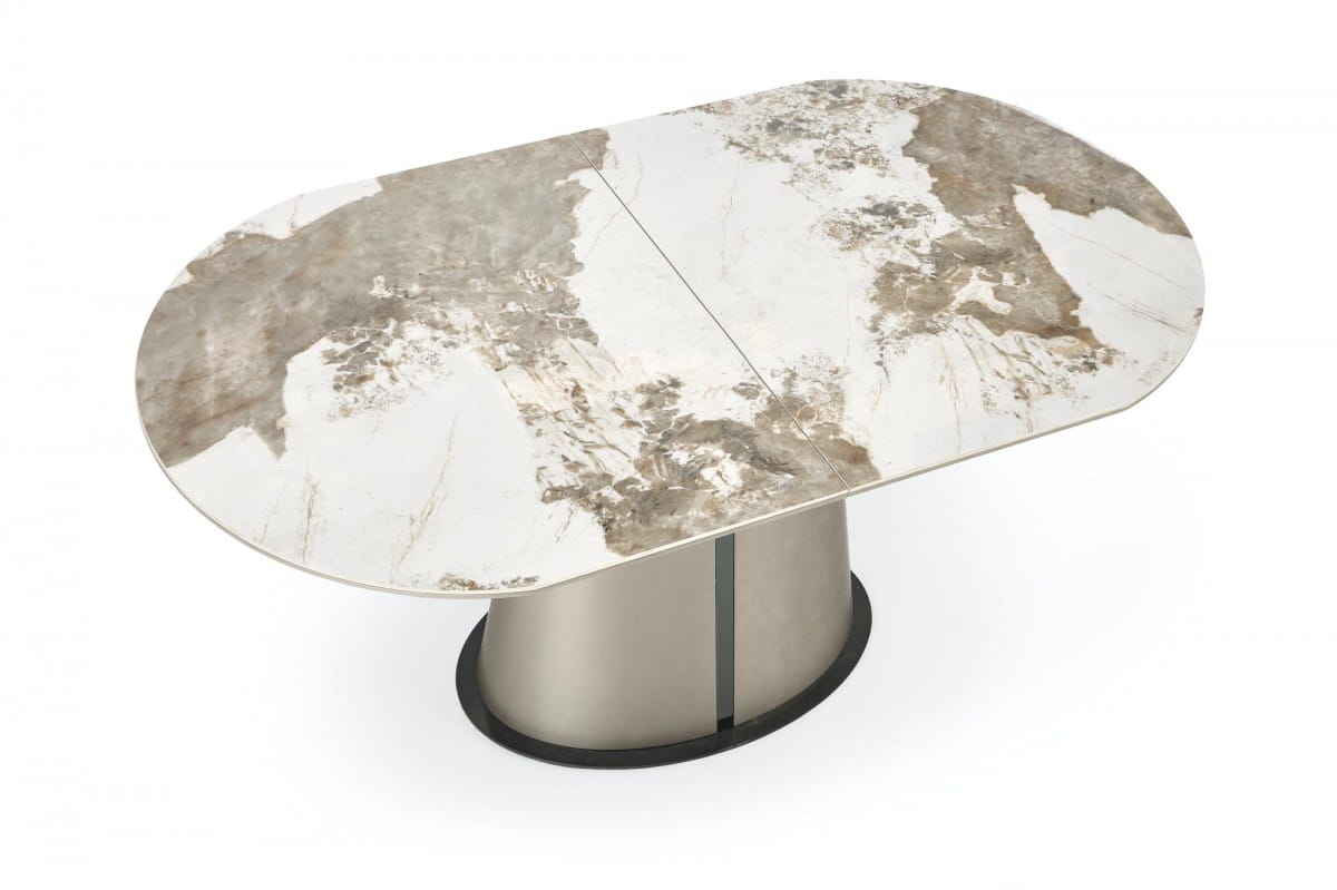 ROBINSON stół rozkładany, beżowy marmur / cappuccino / czarny