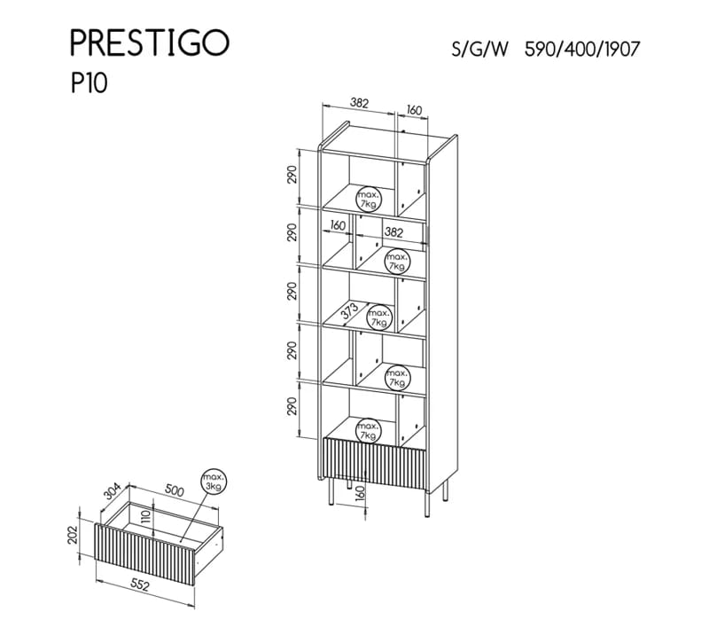 Regał na nóżkach Prestigo P10