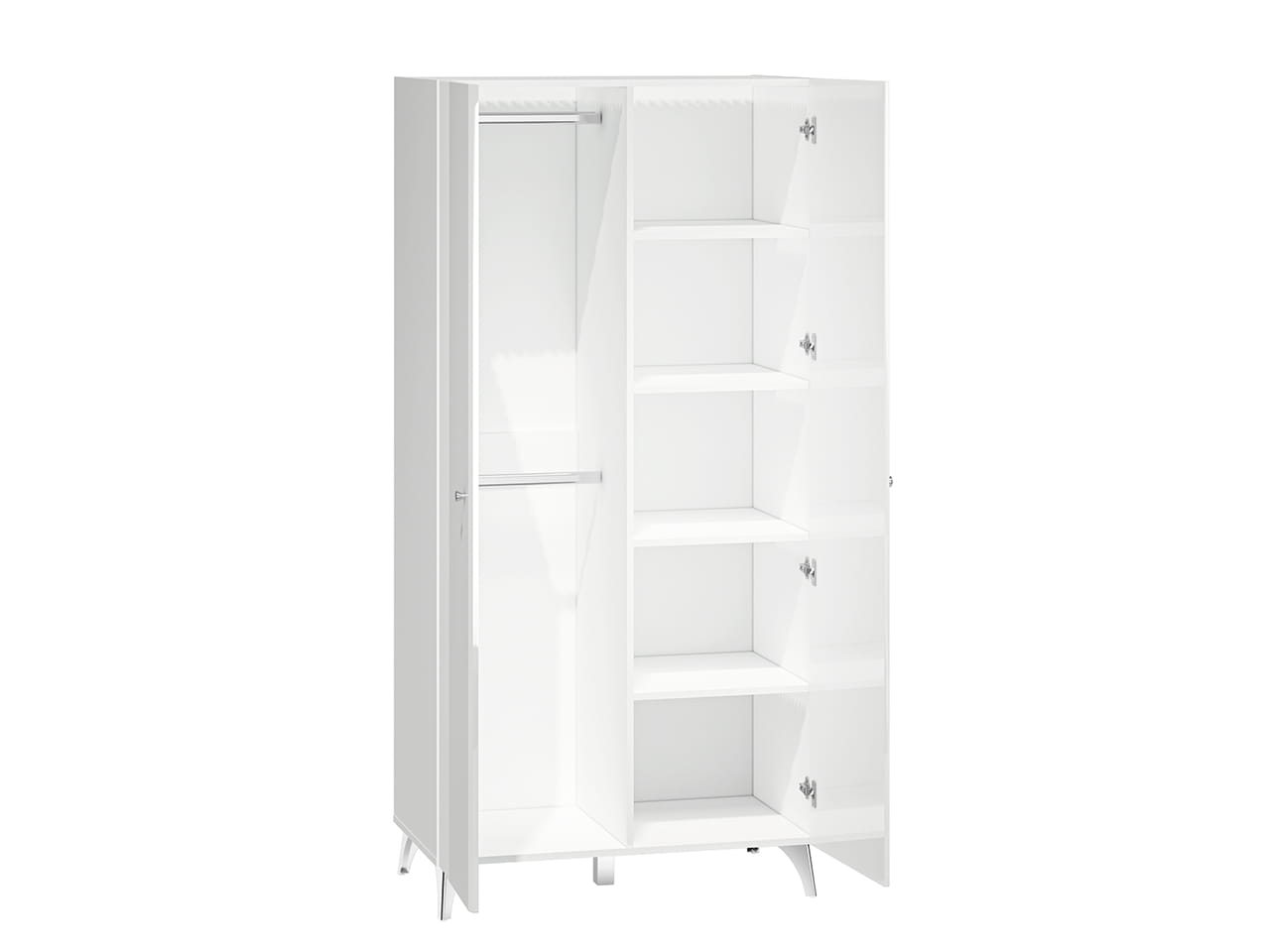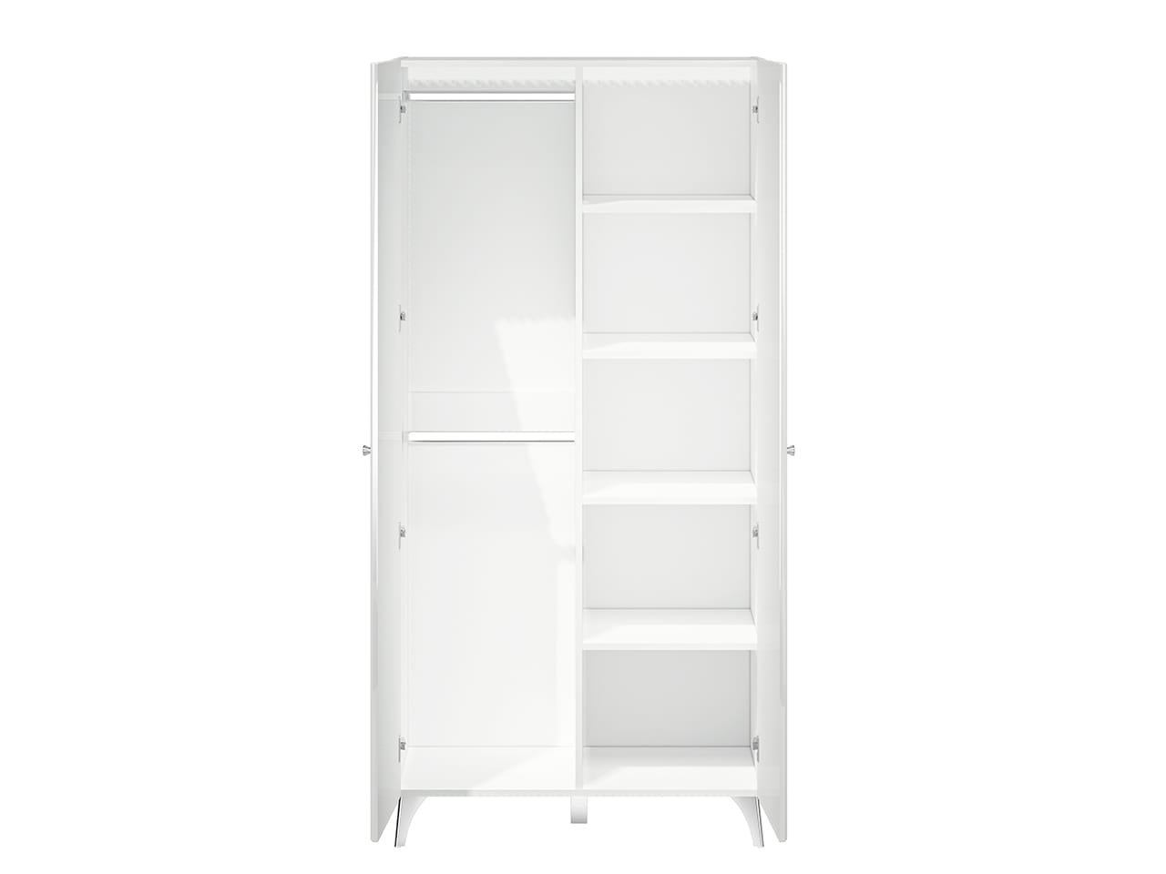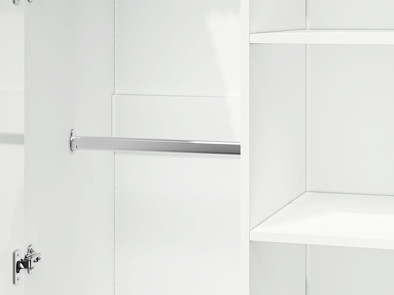 - w lewej części dwa drążki na ubrania, w prawej cztery pojemne półki;