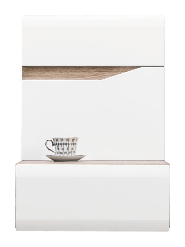 Szafka nocna to jeden z niezbędnych mebli w wystroju sypialni. Ważne jest, by stolik nocny integrował wystrój i sprawiał, że Twój pokój będzie przytulny i piękny. Wybierz ten model, a zyskasz mebel, który będzie nie tylko dekoracją, ale sprawdzi się również pod względem funkcjonalnym. We wnętrzu szafki nocnej możesz przechowywać podręczne drobiazgi, takie jak ładowarka do telefonu , lub przyjmowane leki. Na jej blacie możesz ustawić lampkę nocną lub odłożyć tam książkę, telefon, okulary itp. Dzięki tej szafce nocnej do monotonnej sypialni wniesiesz powiew świeżości. Wybarwienie kolorystyczne płyt meblowych zgodne z aktualnymi trendami sprawia, że ten model doskonale komponuje się z otoczeniem i do tego nigdy nie wychodzi z mody.Cechy dodatkowe :