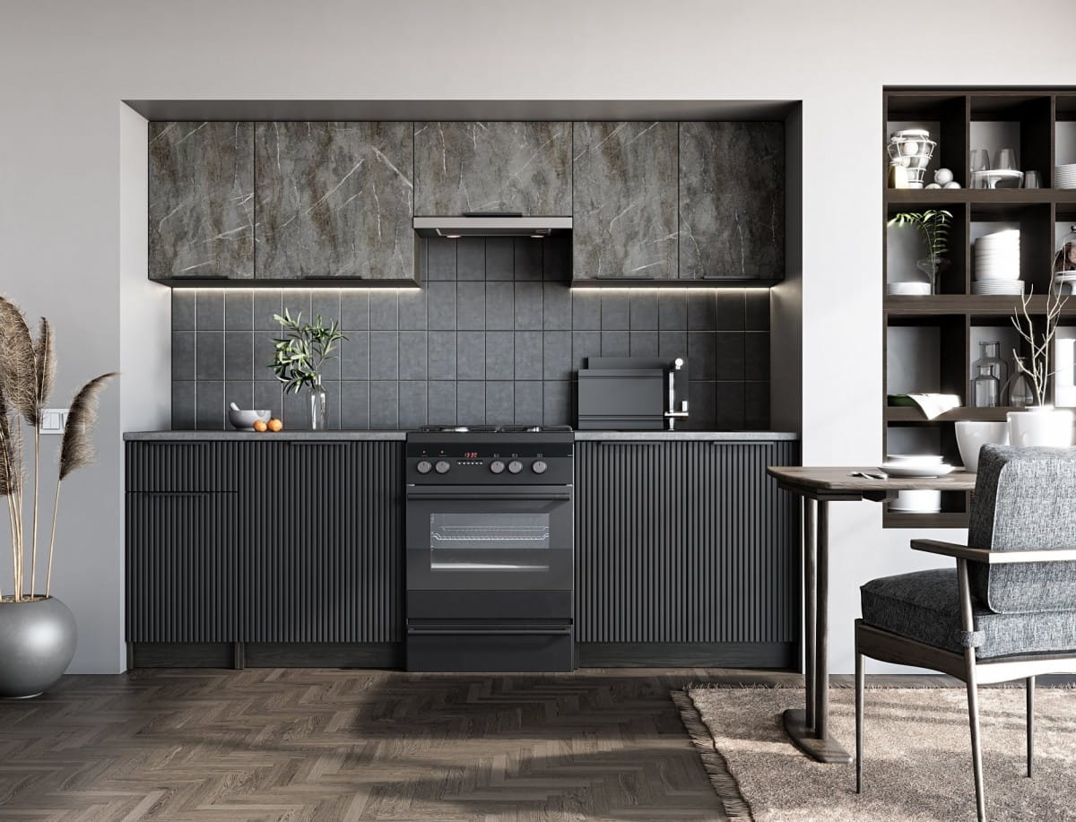 TAMARA 240 kuchnia zestaw korpus: carbon wood, front: popielaty marmur / czarny