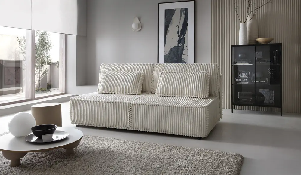 Sofa Komma to kwintesencja minimalistycznego designu, który idealnie wpisuje się w nowoczesne wnętrza. Zrezygnowano tutaj z zbędnych ozdobników, skupiając się na esencji wygody i stylu. Charakteryzuje się brakiem bocznych podłokietników, co nadaje jej lekkości i otwartości.