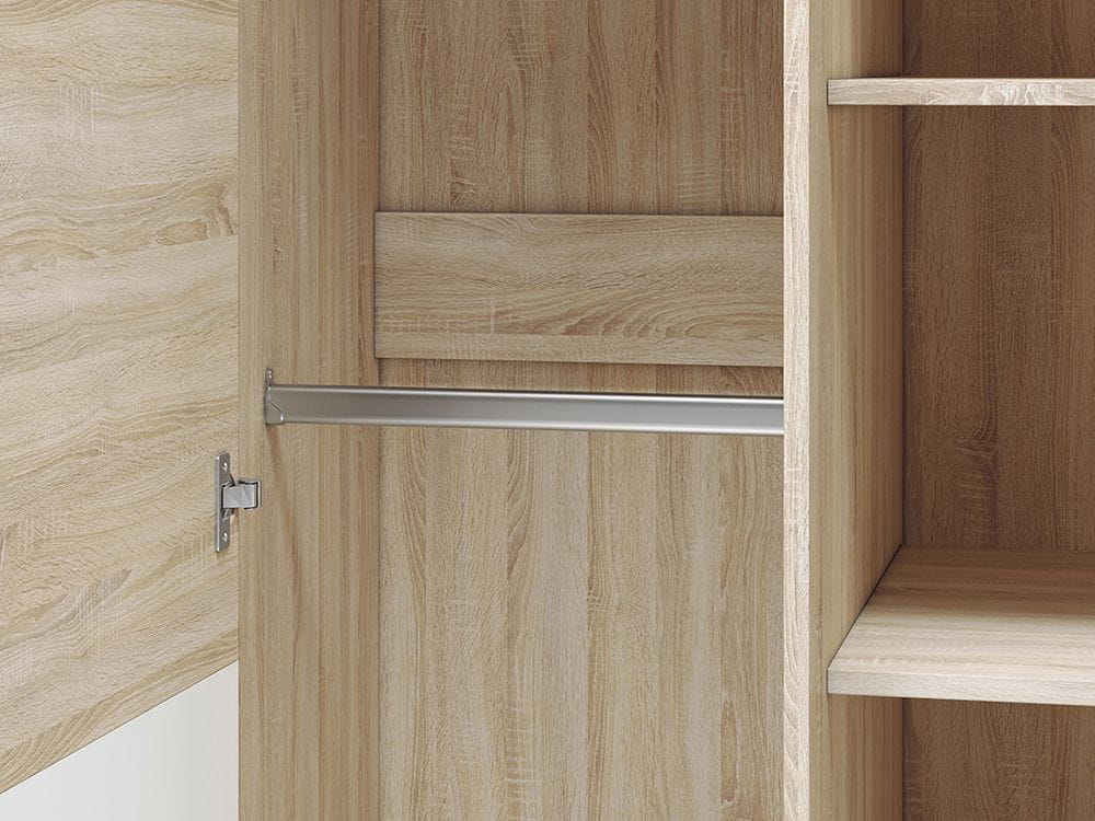 i harmonizować z dominującym stylem aranżacji. Ta szafa z drzwiami uzupełni wystrój pokoju młodzieżowego, przedpokoju lub sypialni. Ma ona praktyczne wyposażenie, które pozwoli Ci pomieścić wszystkie niezbędne elementy garderoby: od koszuli garniturów po sukienki i jeansy. Jest skonstruowana tak, by w jej wnętrzu było wystarczająco dużo miejsca na przechowywanie wszystkiego, czego potrzebujesz. Kupując u nas, masz pewność, że dostarczymy mebel, który wpisuje się w trendy wnętrzarskie.