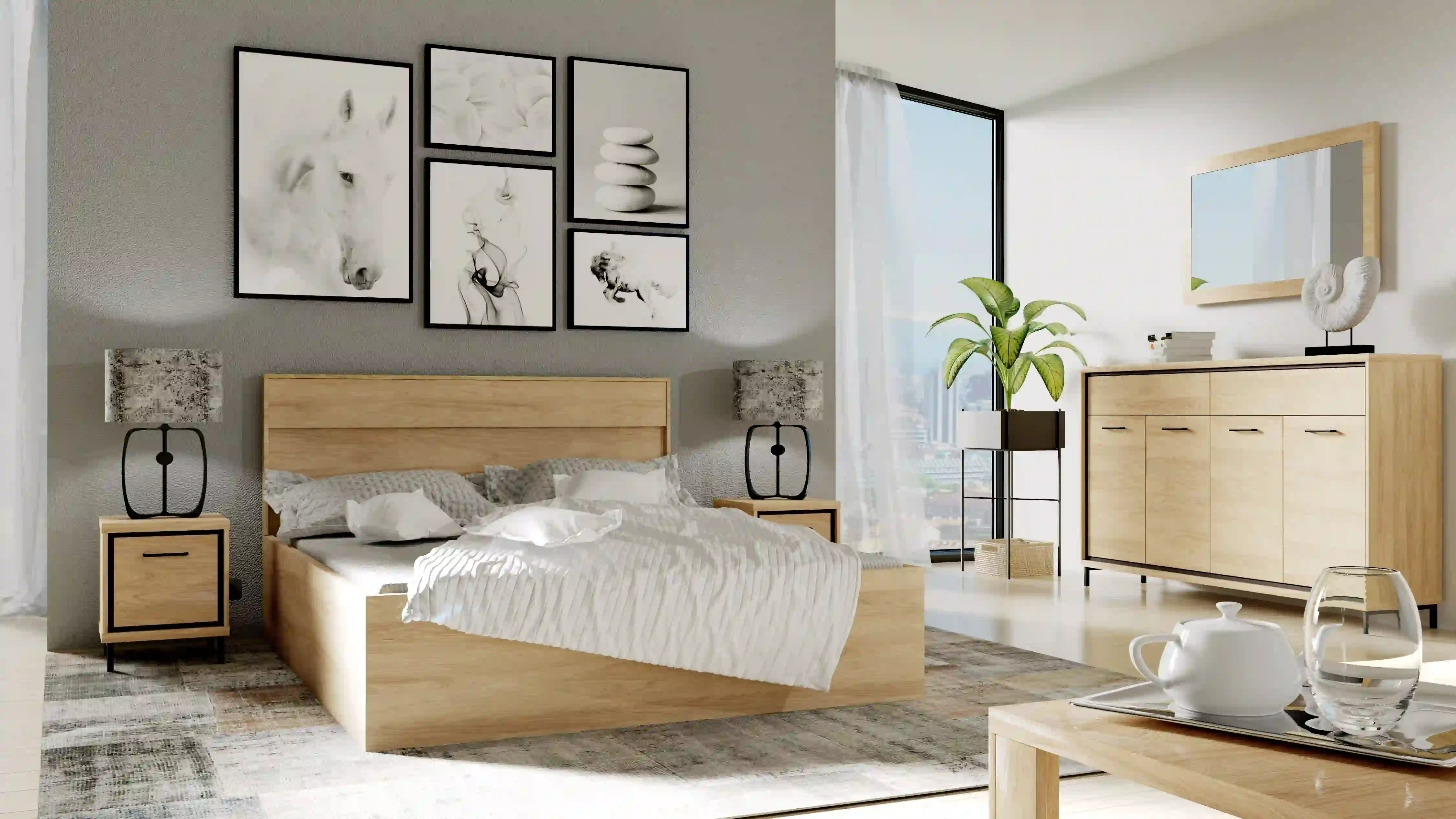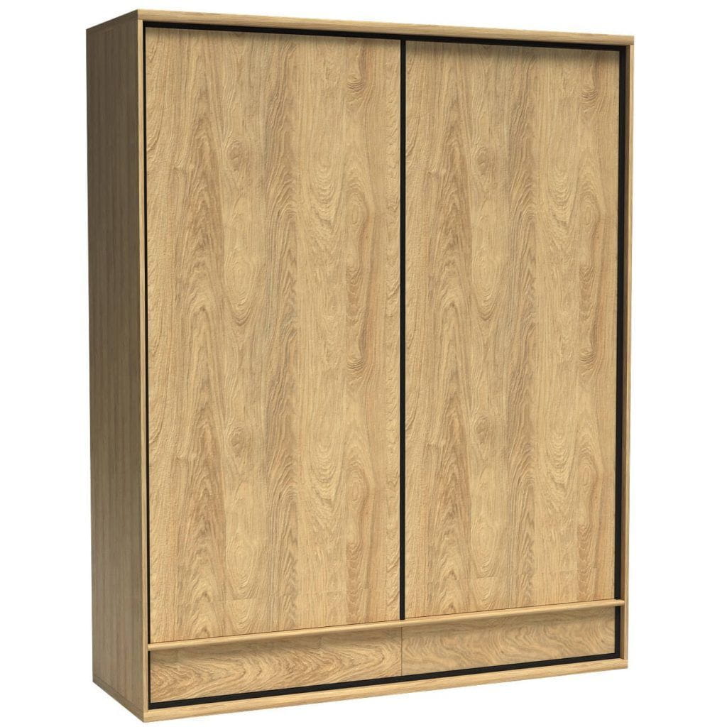 Posiada piękne, czarne wykończenia w postaci listew. Ciepły, jasny kolor mebla pasuje do każdego wnętrza, jednak zastosowane ciemne akcenty inspirowane są stylem loftowym.